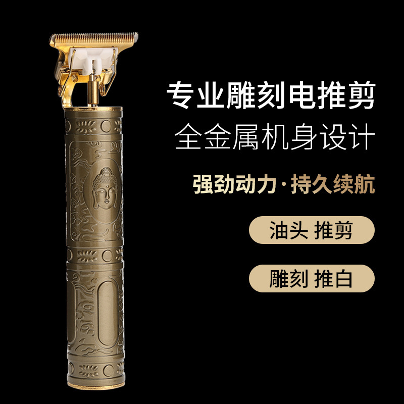t-shaped rounded corner steel knife design, strong power, no scalp damage, no hair clip, bottom switch, one-click start.