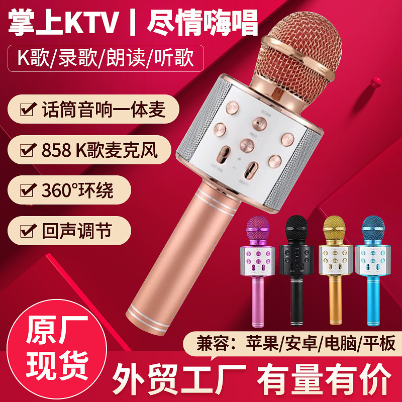 Wireless Bluetooth Microphone Mobile Phone WeSing Gadget for Live Streaming Variable Sound Ws858 Children Microphone Audio Integrated