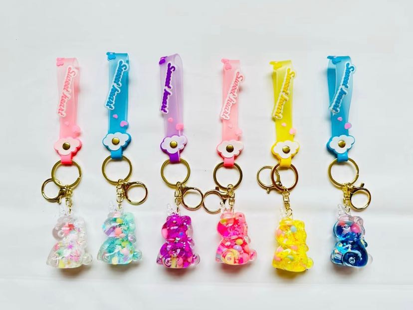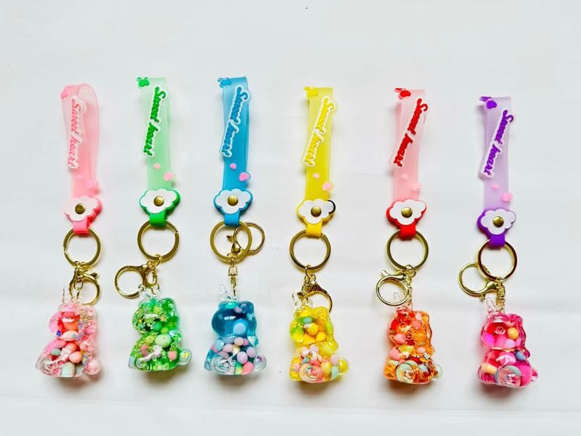Unicorn Oil Bottle Keychain Pendant Colorful Beads Bubble Beads Cartoon Drifting Doll Keychain Pendant Leather Rope Finished Product 中文版
