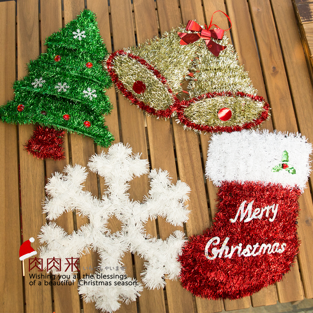 Plastic PVC material, with a woven process. Suitable for Christmas window display hanging decorations.