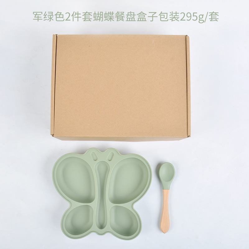 army green butterfly dinner plate * wooden handle spoon * aircraft box