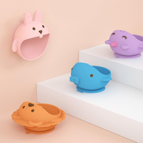 Korean ins cartoon rabbit children's side dishes silicone dinnerware set training learning to eat durable big mouth bowl