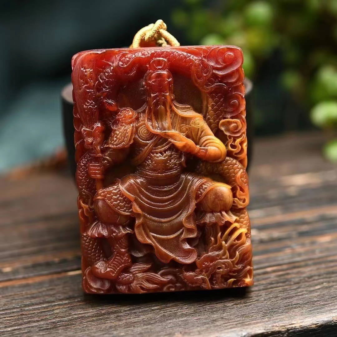 double-sided carving guan yu pendant get hand-knitted rope pieces free