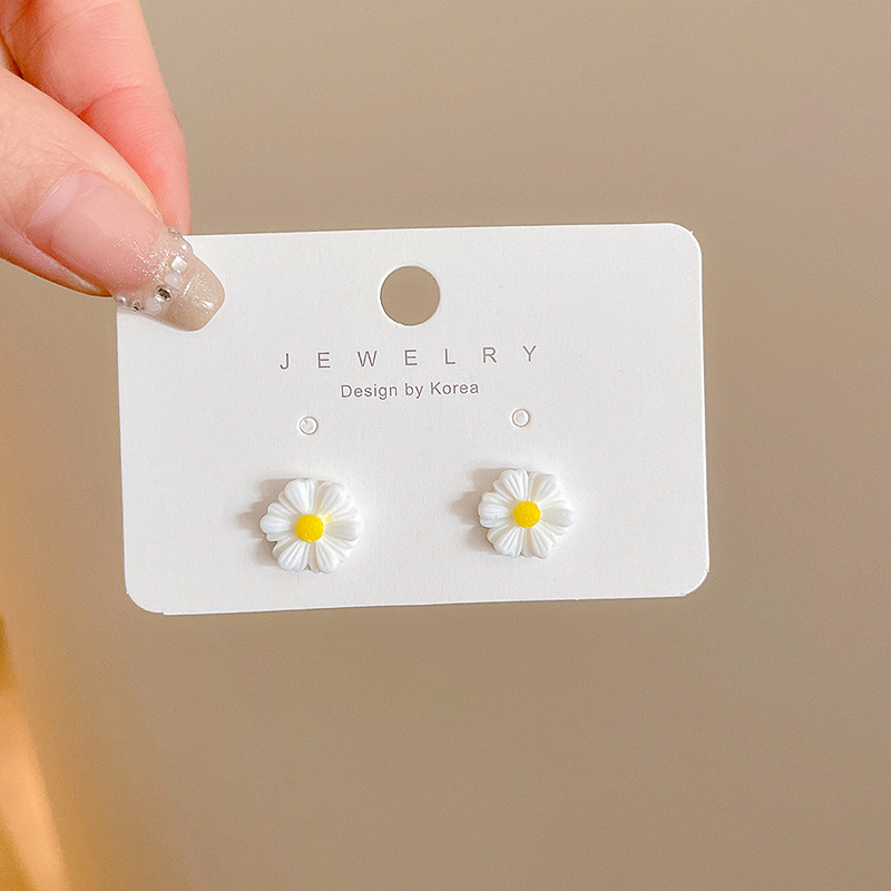 48# white flower stud earrings-silver needle
