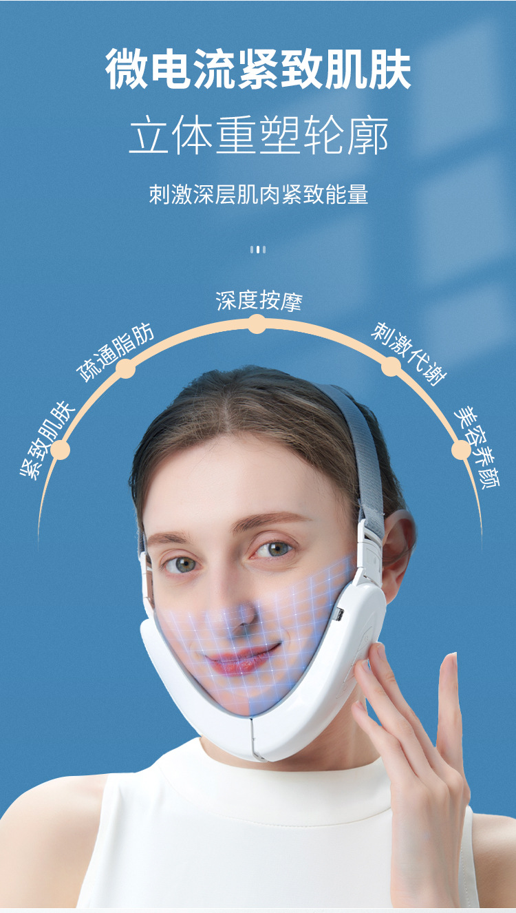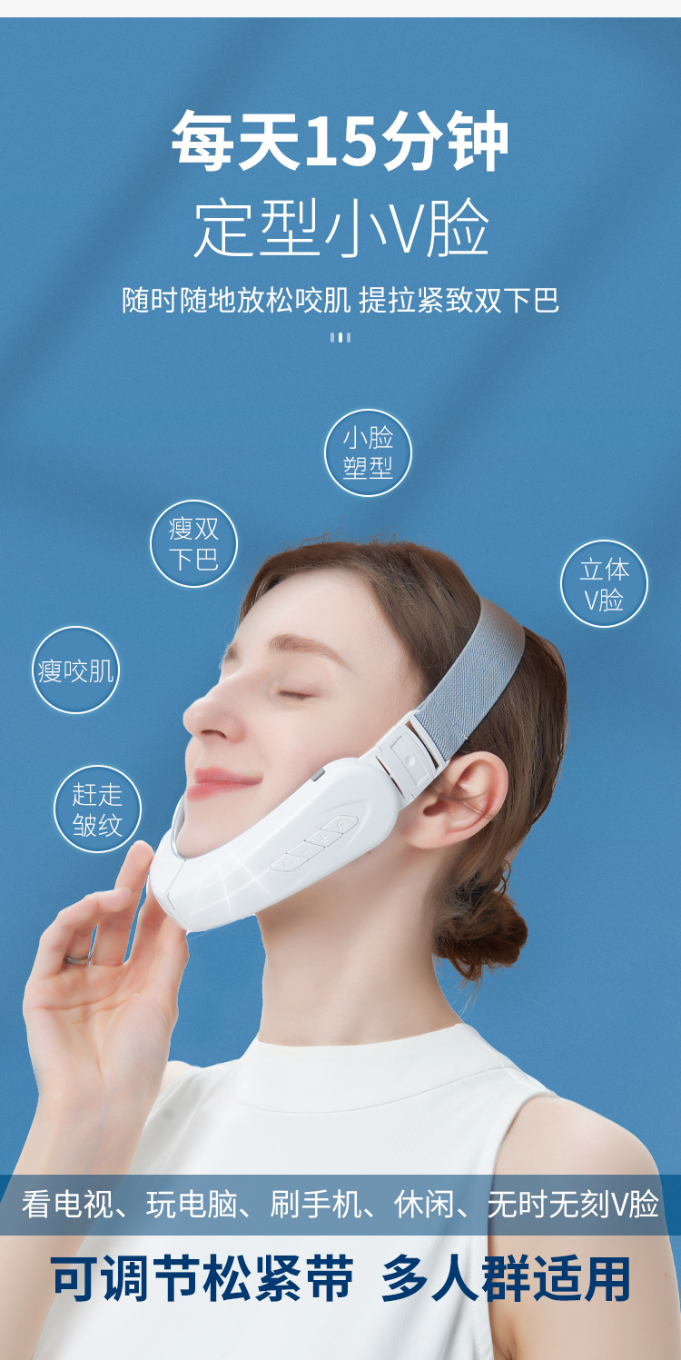 Cross-Border New V-Type Face Slimming Instrument Micro-Current Plastic Face Instrument Lifting and Tightening Chin Smart V Face Instrument Face Press