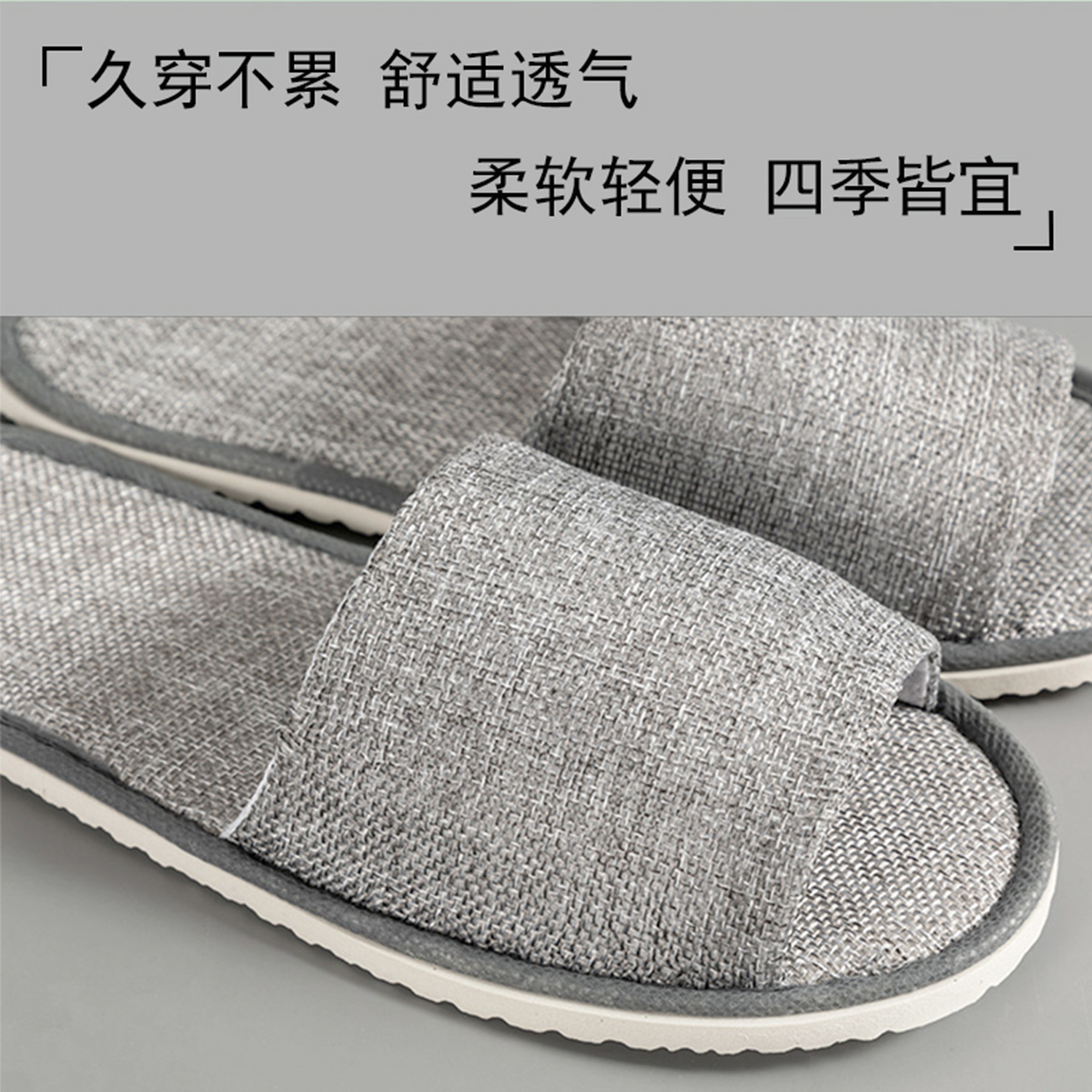 [half pack] thick linen slippers gray
