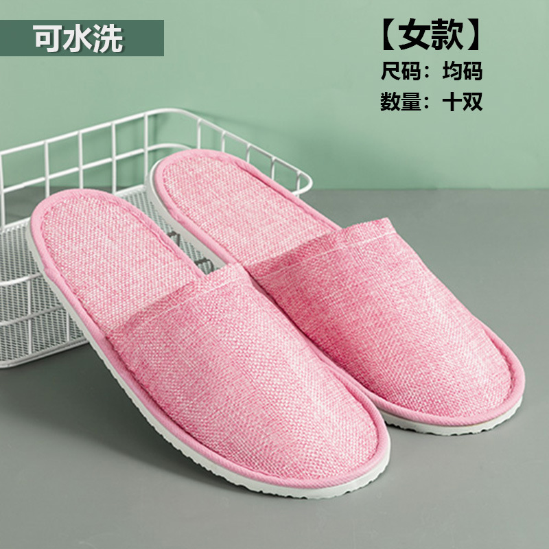 [half pack] thick linen slippers pink