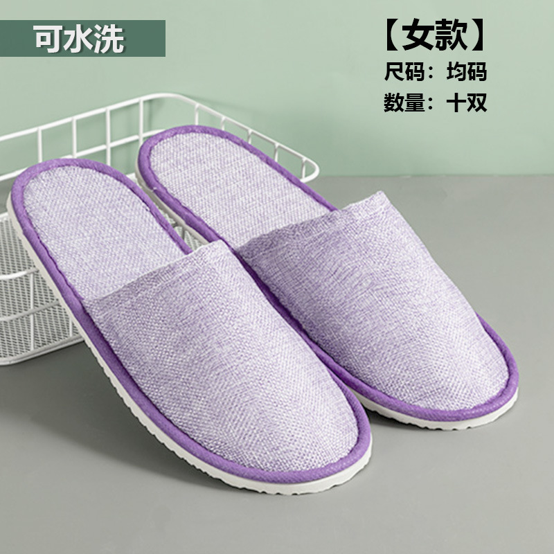 [half pack] thick linen slippers purple