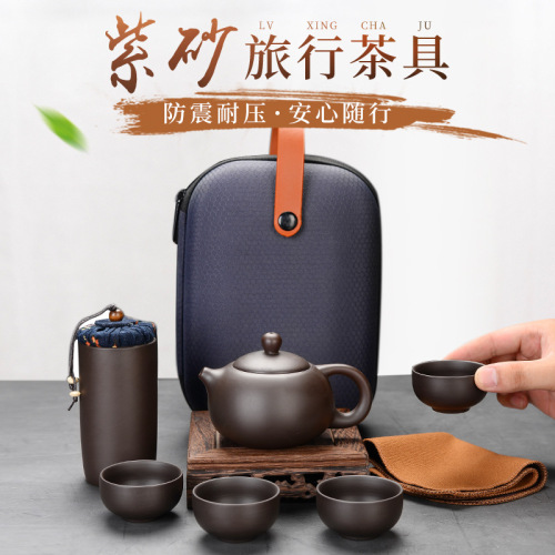 purple sand travel tea set a pot of 4 cups + tea pot + tea towel + travel bag