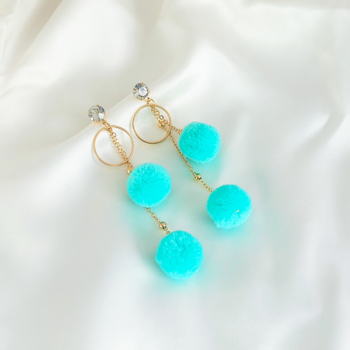 a pair of ethnic style earrings women's long personalized wool ball ear studs retro bohemian vacation tassel earrings 中文版