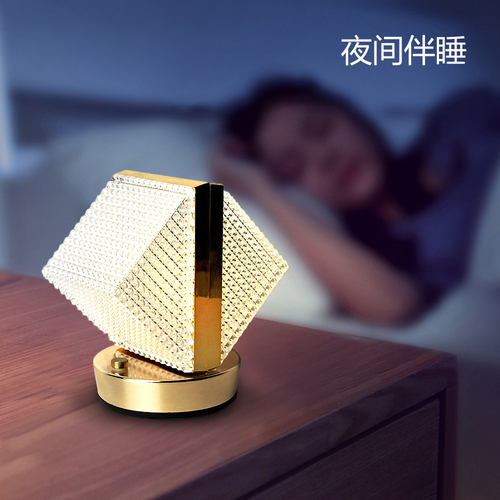 creative crystal cube metal table lamp light luxury bedroom bedside charging touch small night lamp decoration decoration gifts 中文版