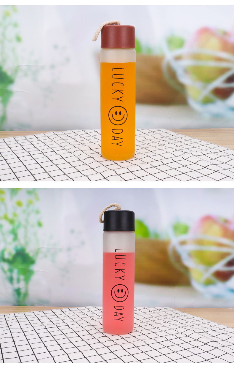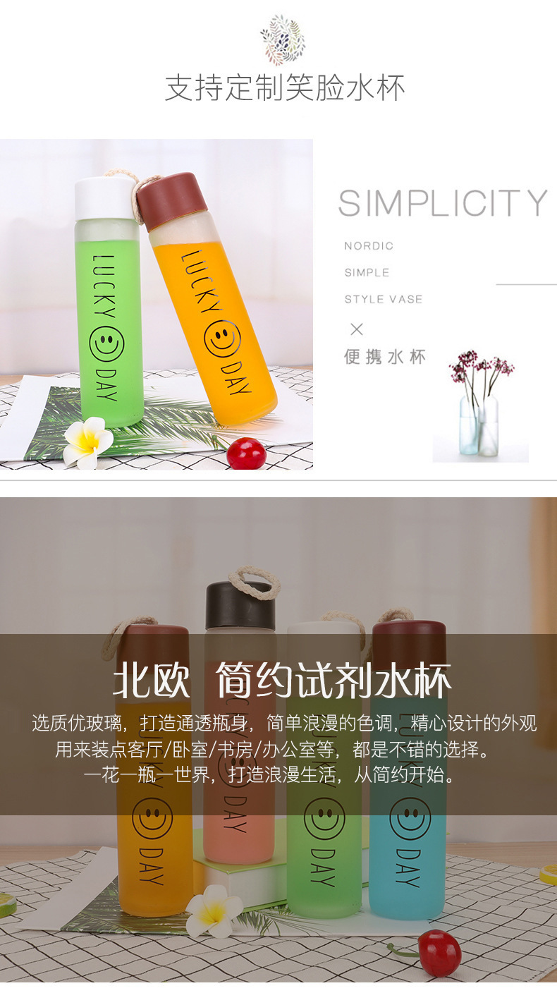 Hemp Rope Smiling Face Cup Frosted Glass Water Glass Wholesale Portable with Lid Gift Cup Supply Floor Push Stall Advertising Cup
