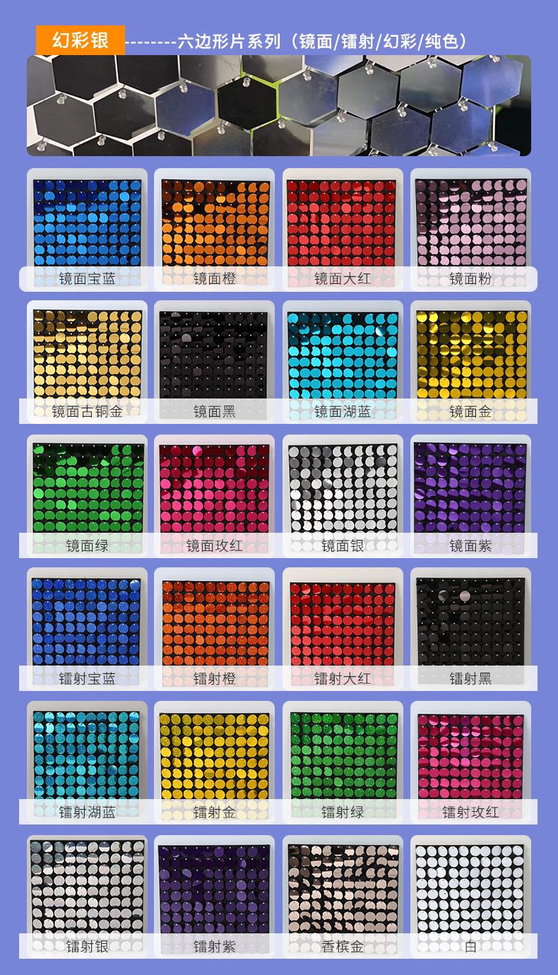 hexagonal pneumatic buckle self-locking shiny pneumatic plate pneumatic film background sequins background wall sequins decoration 中文版