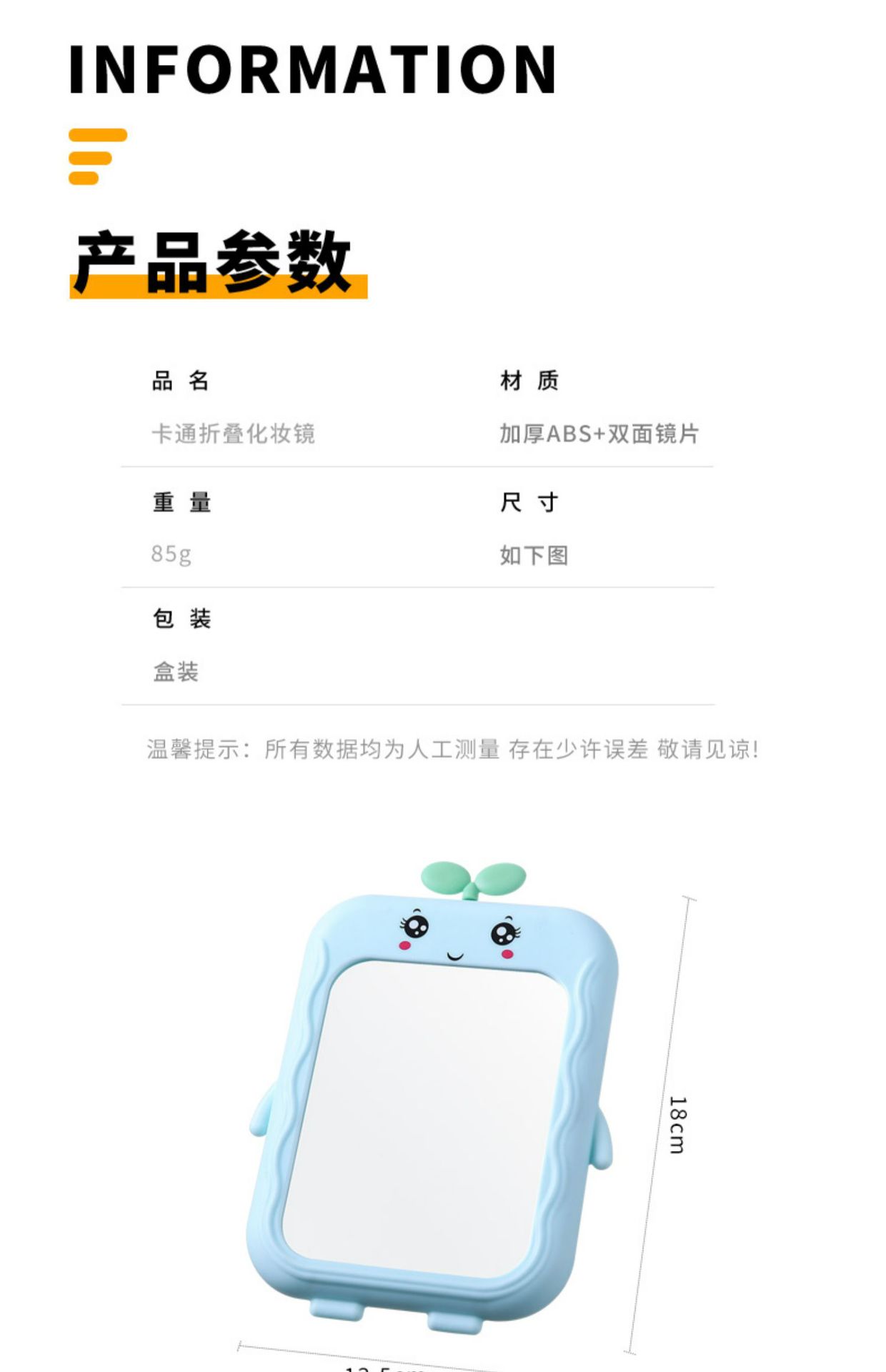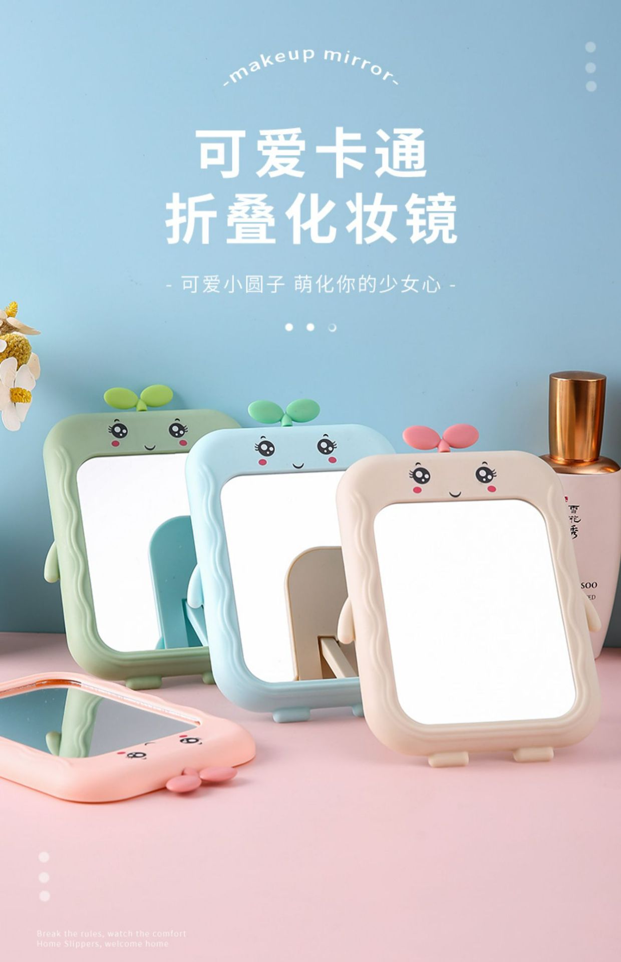 small mirror carry-on cosmetic mirror household folding mirror cartoon desktop stand-up handheld mirror girl portable travel carrying