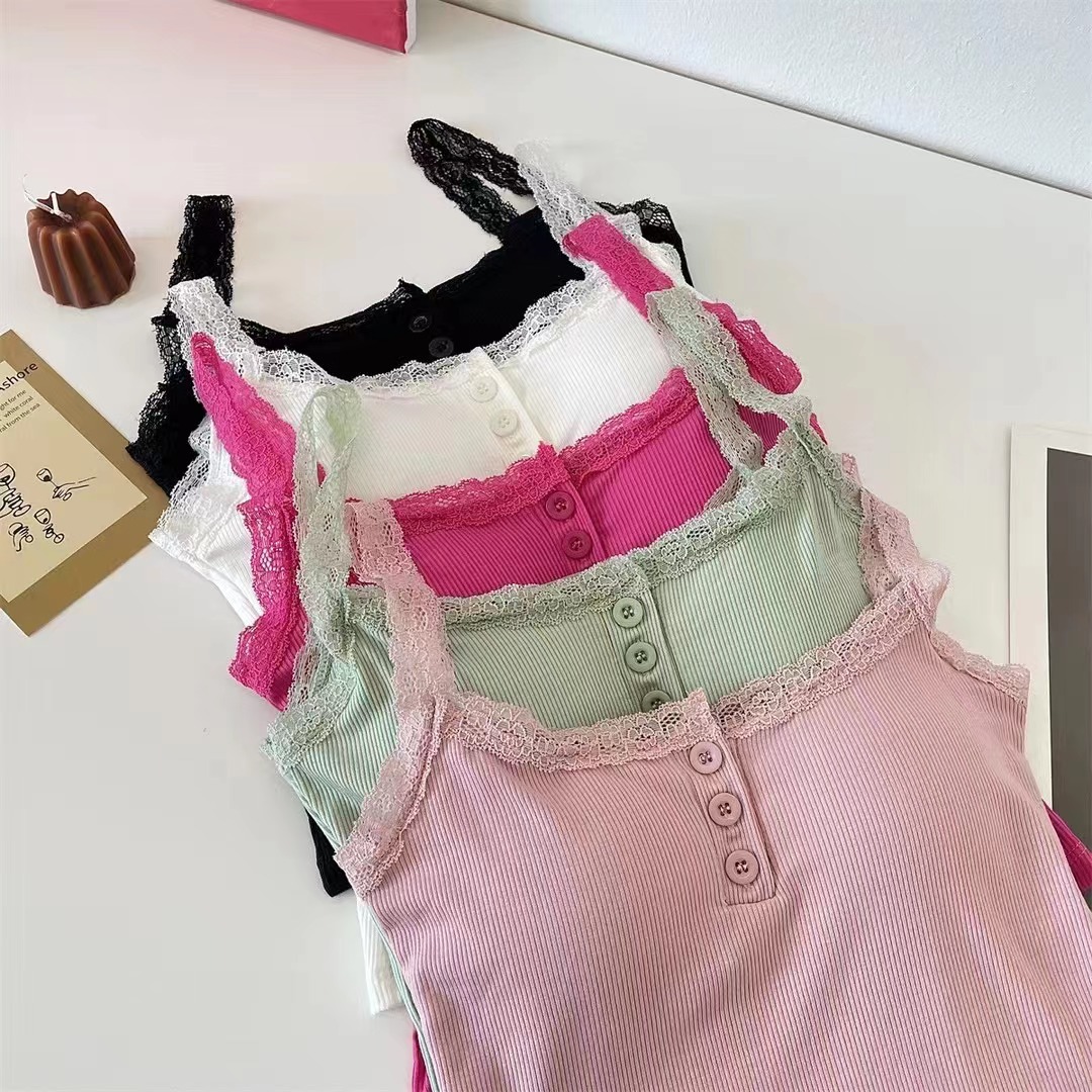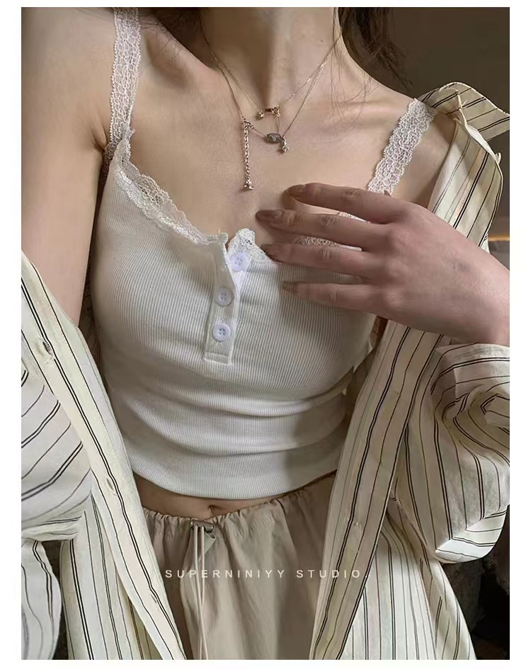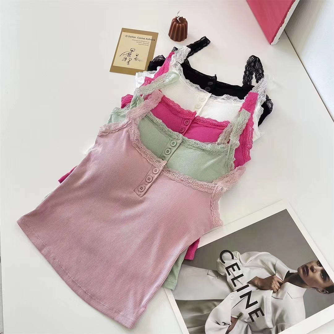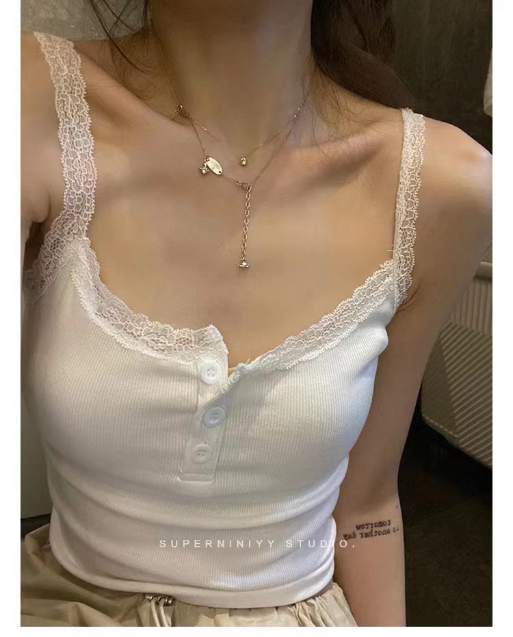 summer new pure cotton fashionable embroidery sling lace shirt top women's design sense niche lace vest