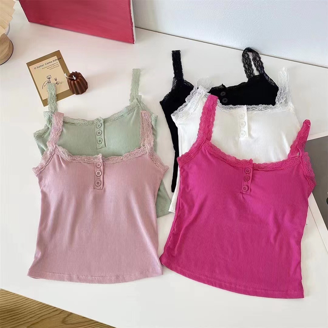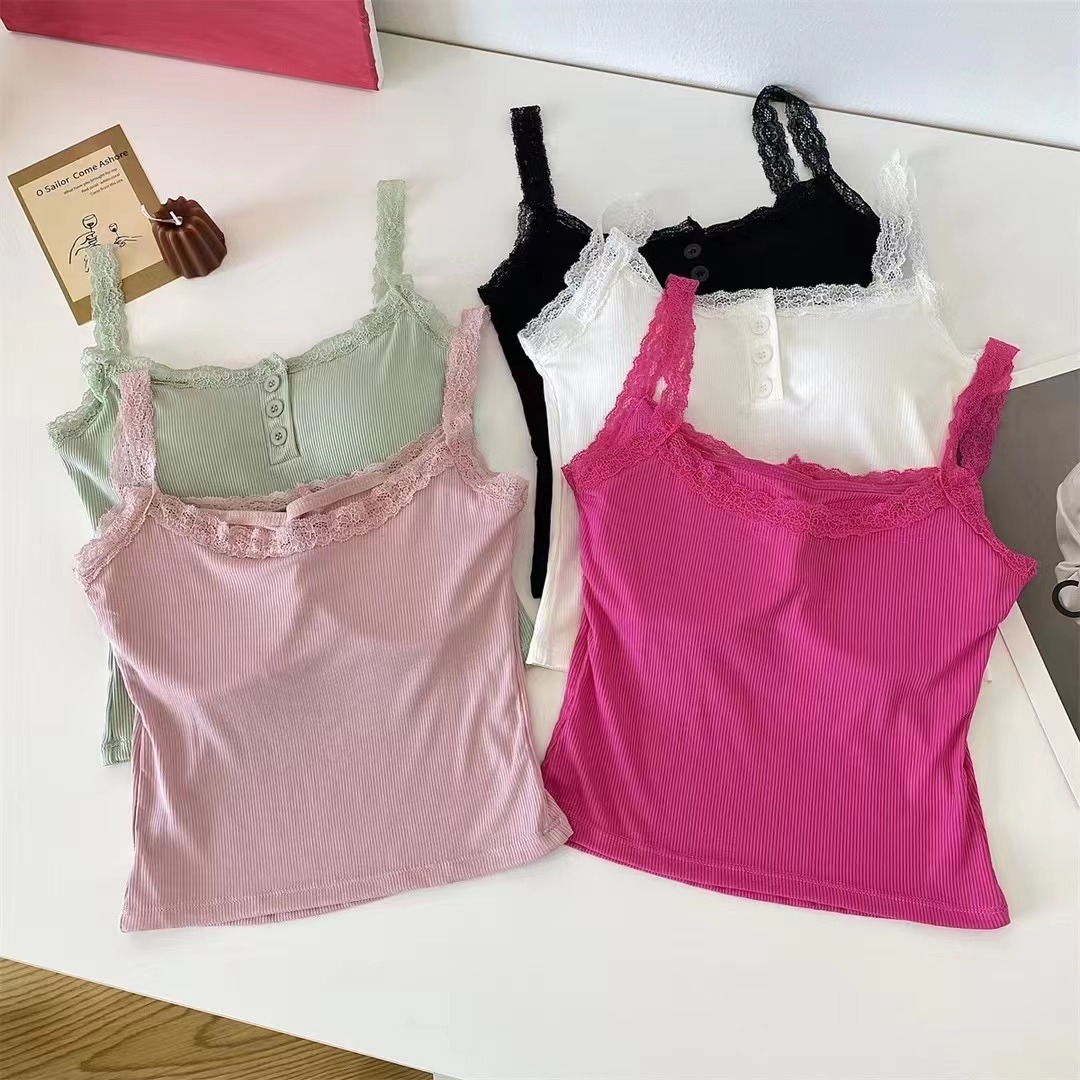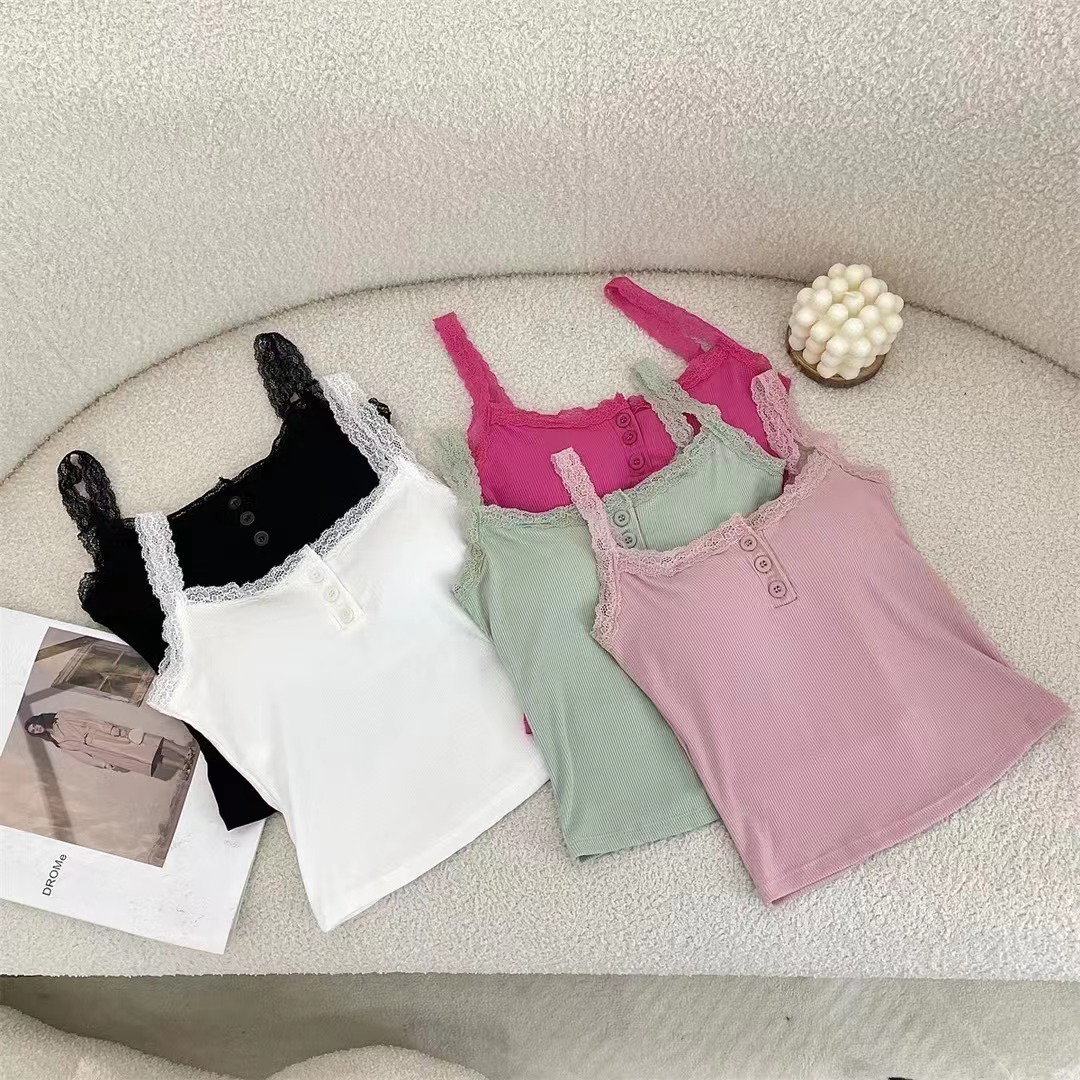 summer new pure cotton fashionable embroidery sling lace shirt top women's design sense niche lace vest