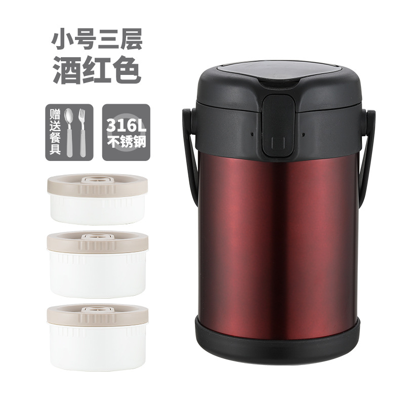 316 inner bowl 2.2l three-layer dark red with thermal bag free