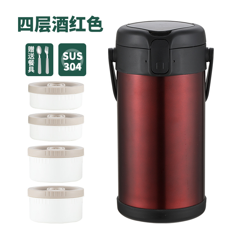 304 inner bowl 2.7l four-layer dark red with thermal bag free