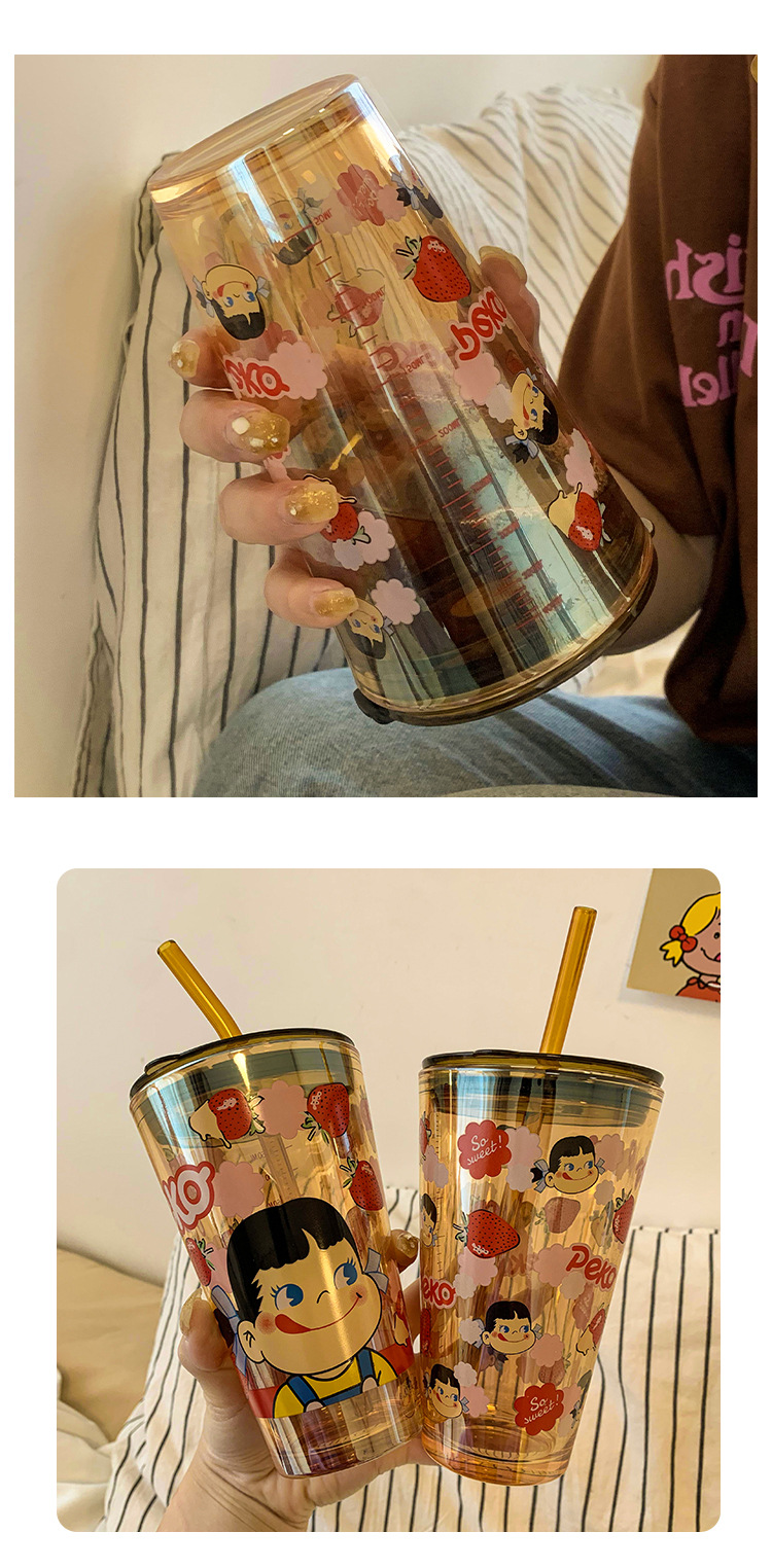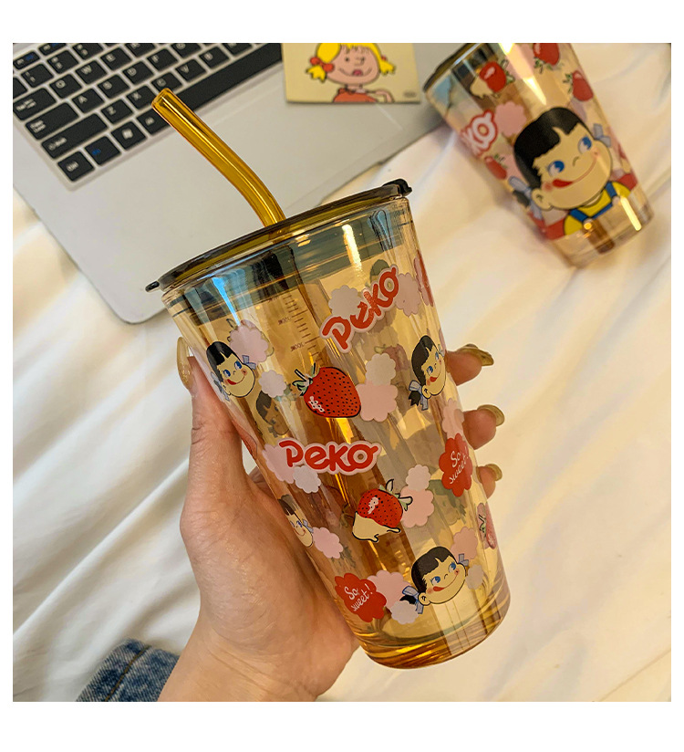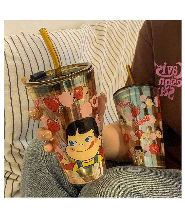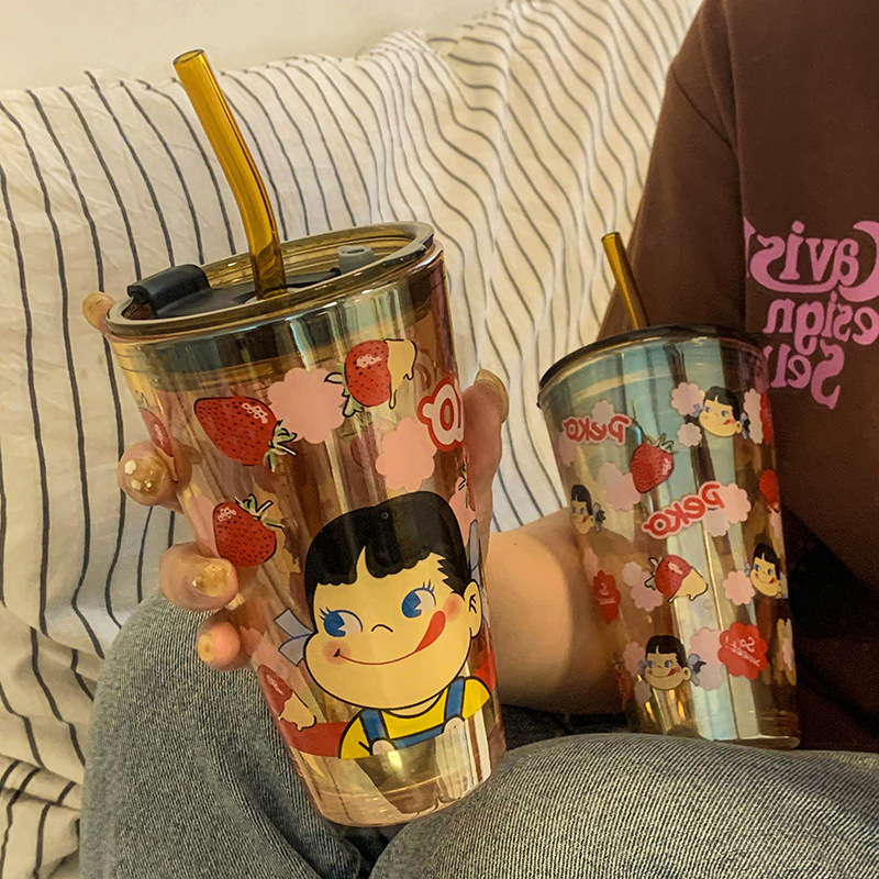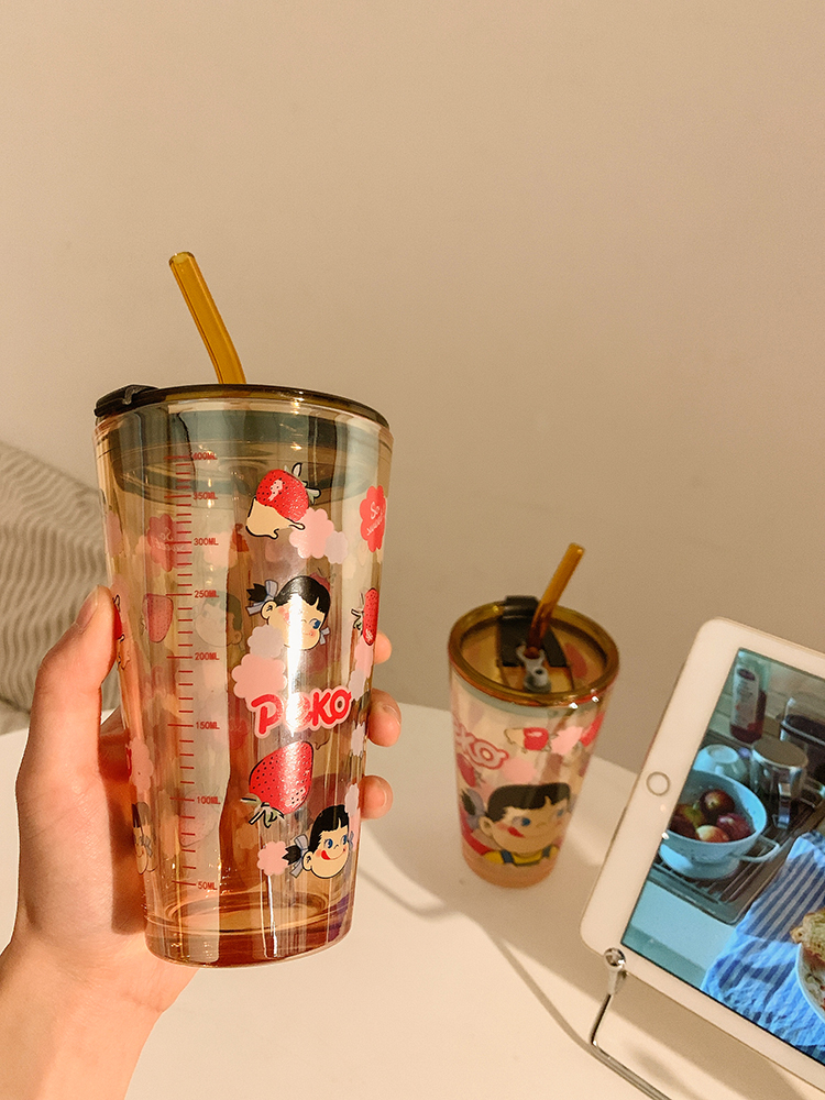 cute glass female high-looking internet celebrity straw water cup office home juice coffee cup