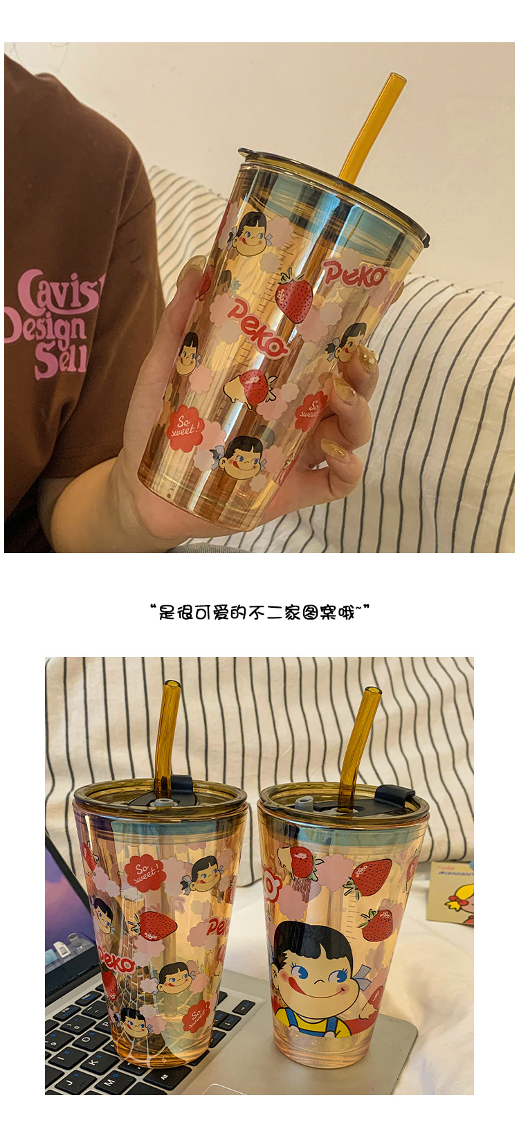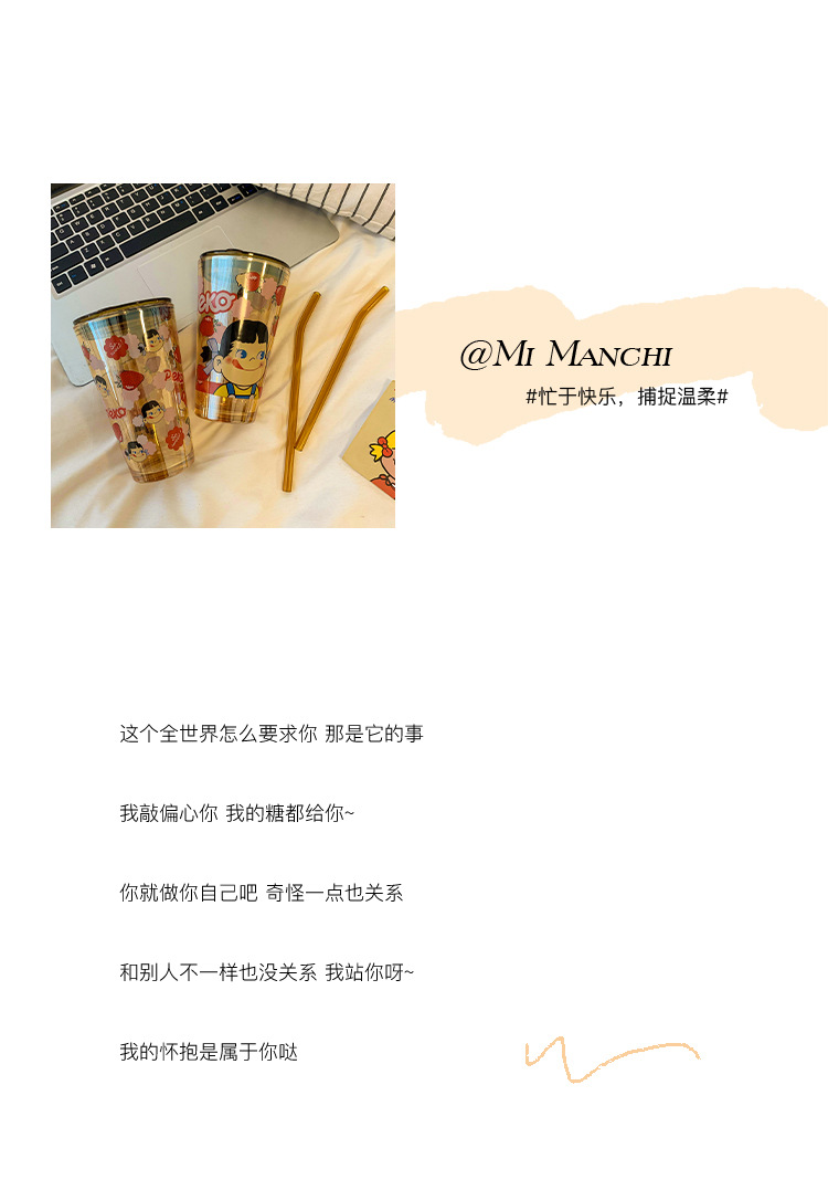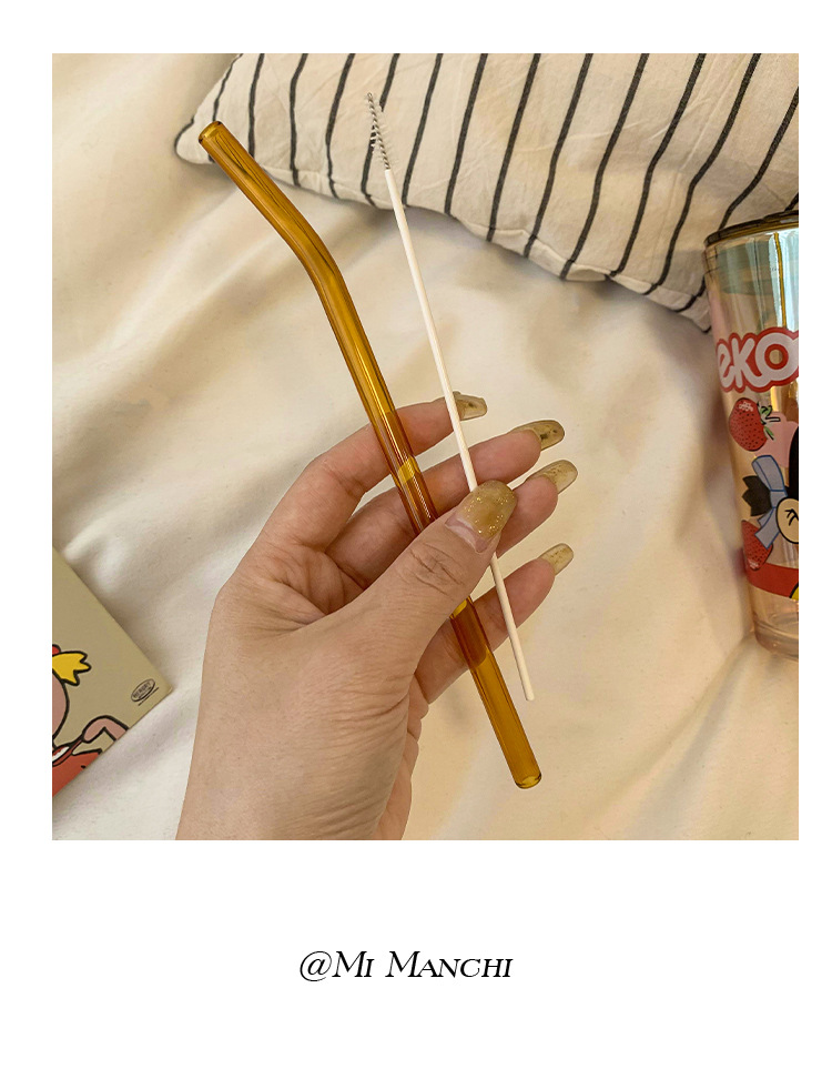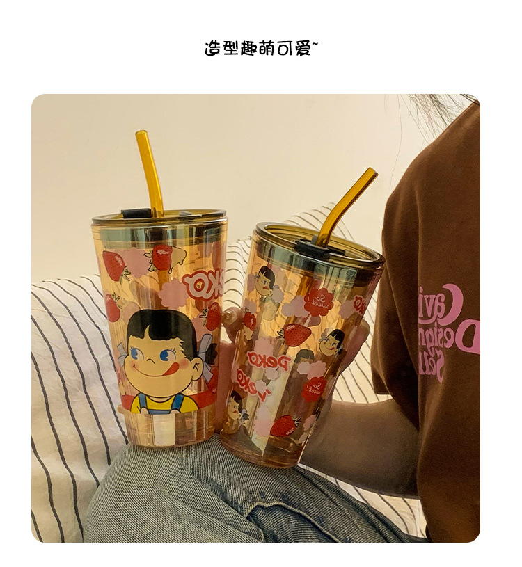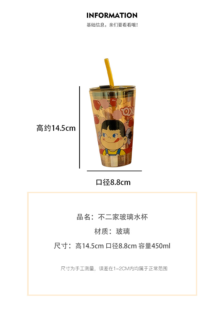 cute glass female high-looking internet celebrity straw water cup office home juice coffee cup