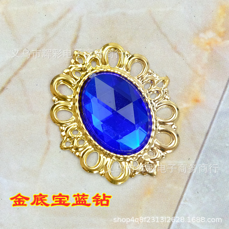 Gold Background Sapphire Blue Diamond * 3.8 X4.4 cm