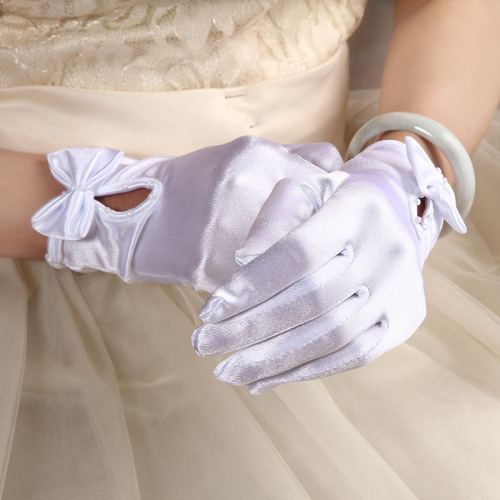 Bridal Satin Satin Bow Beaded Bridal Gloves White Short Gloves Wedding Dress Dinner Accessories 中文版