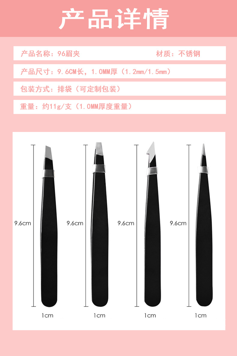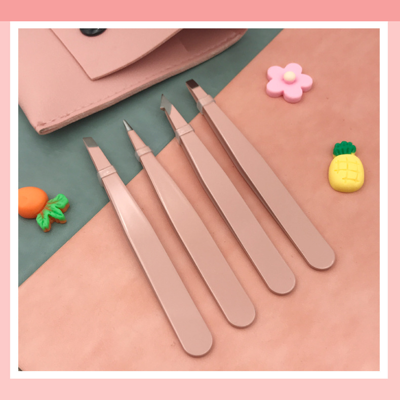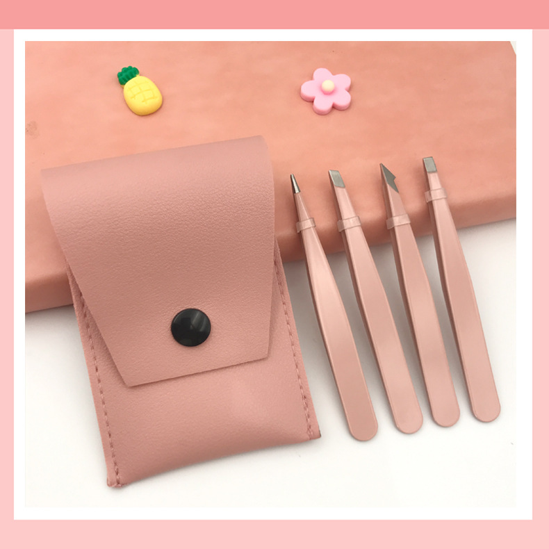 4 pink eye tweezer + bag set