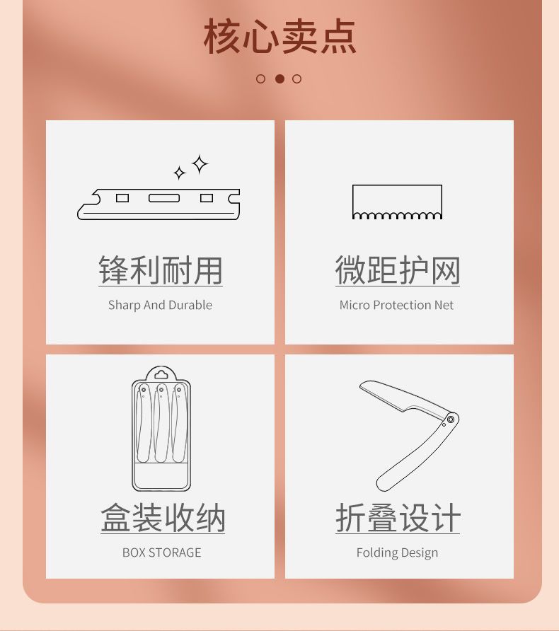 folding eye-brow knife three-piece small box (650/piece)