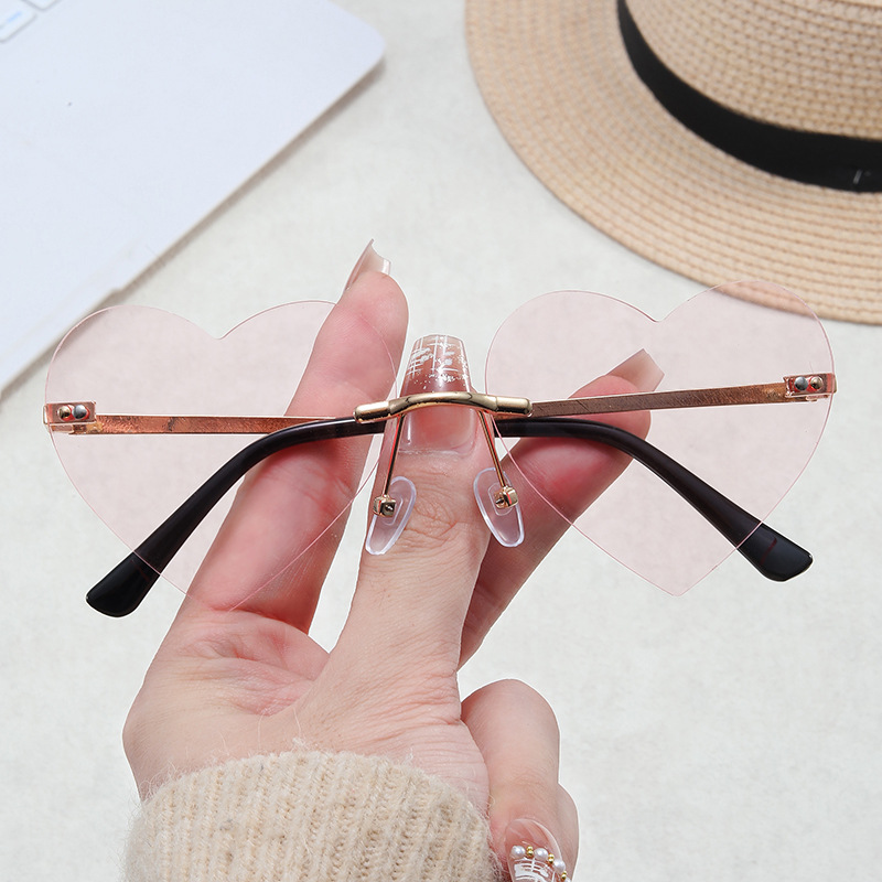 New Modern Love Rimless Sunglasses Women's Ins Style Heart-Shaped Sun Glasses Cross-Border Fashion Sunglasses Wholesale