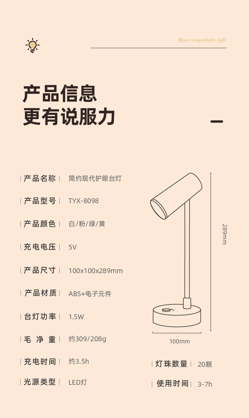 Simple modern eye protection table lamp