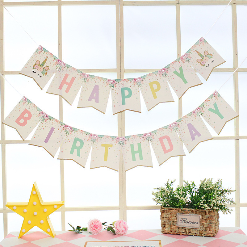 2. The size of the unicorn birthday flag is14.5*18CM, individual OPP bag packaging, weight about 50 grams.