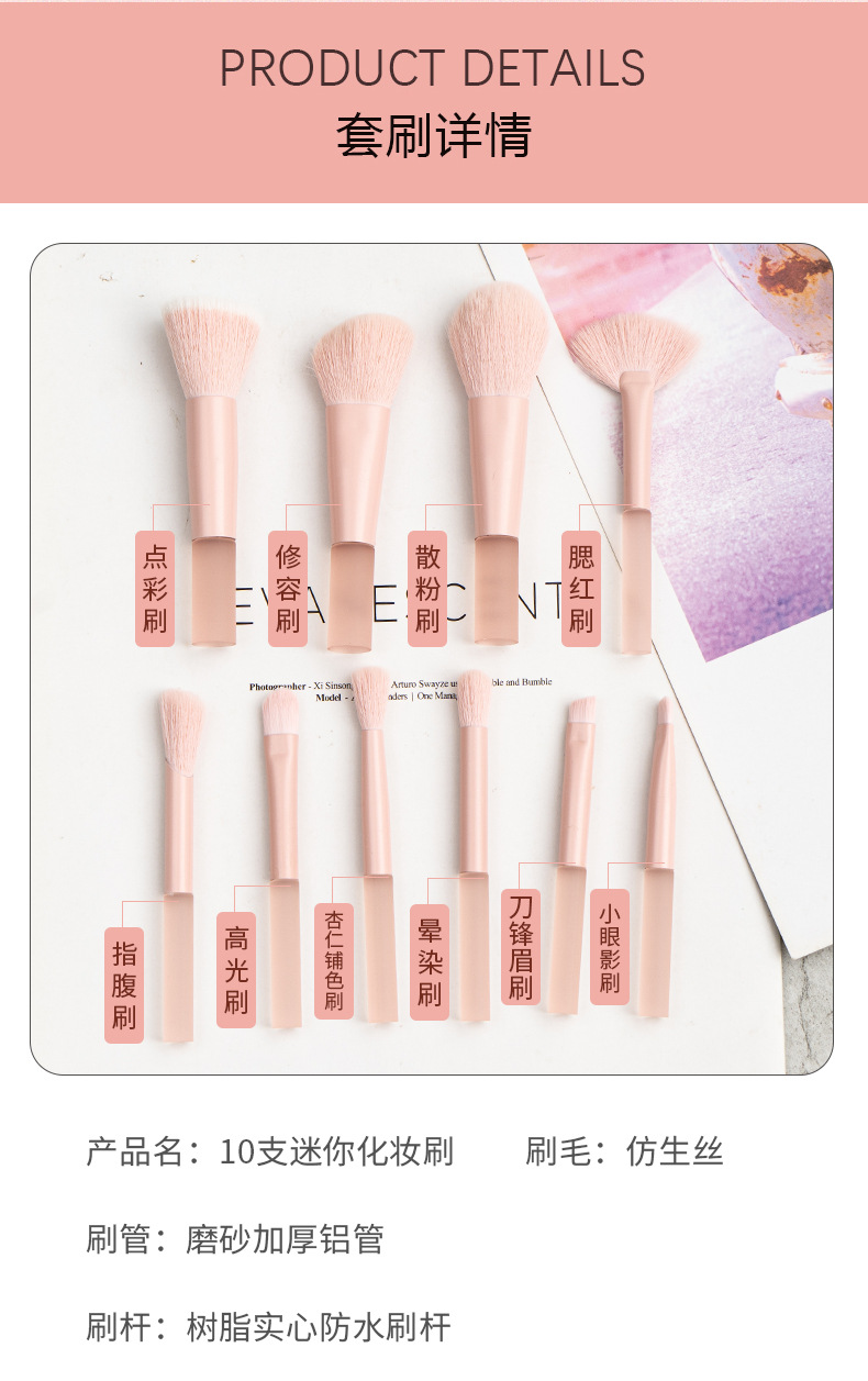 peach mini10 pieces brush suit opp bag