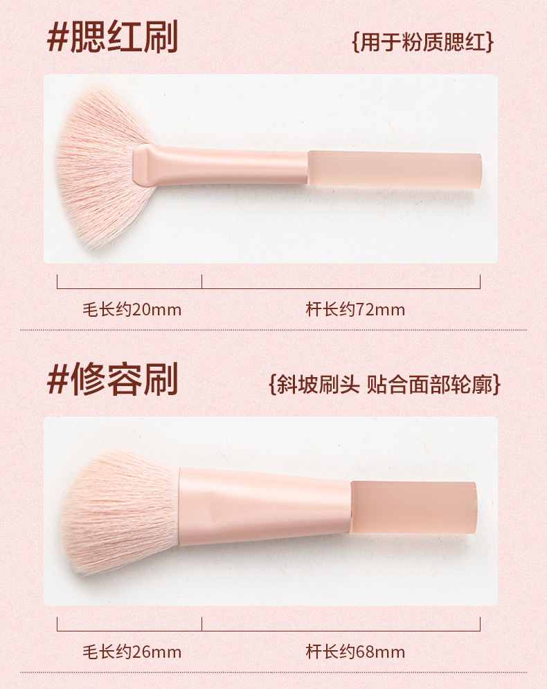 peach mini7 pcs brush suit opp bag