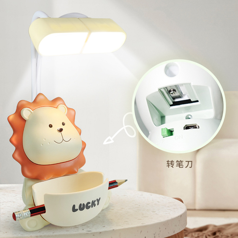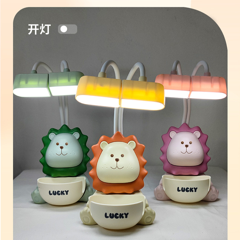 dual lamp holder lion table lamp with pencil sharpener pen holder storage hose adjustable angle children's room eye protection learning light