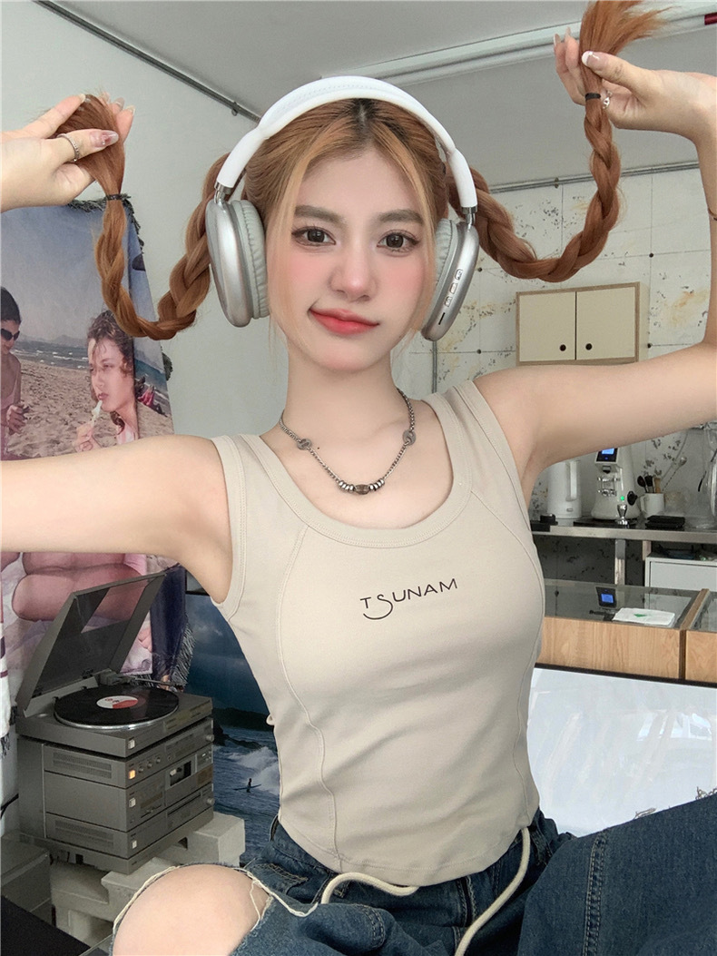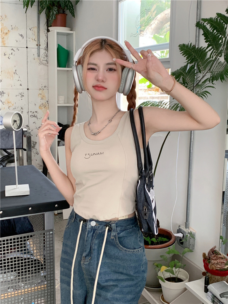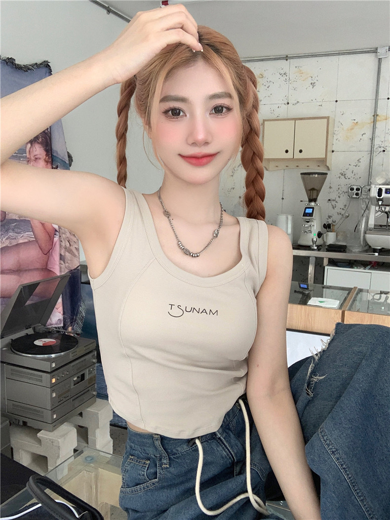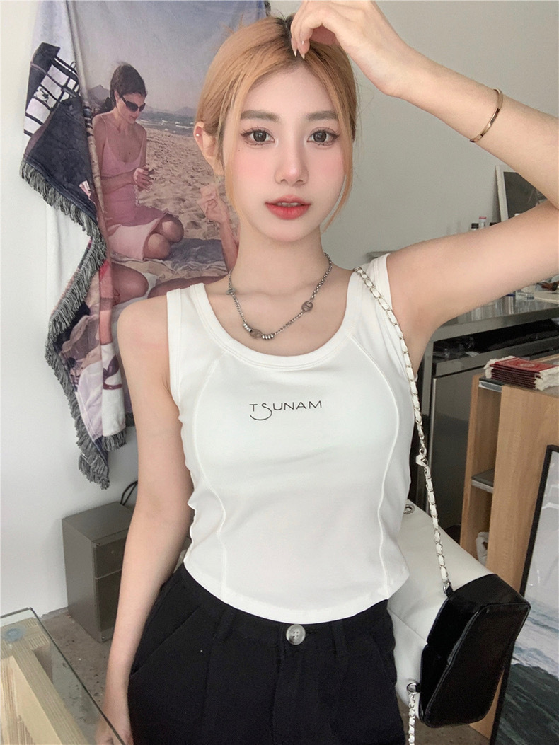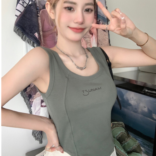 3019 pure cotton new fishbone camisole women's chest pad pure hot girl sexy sleeveless base top inner wear