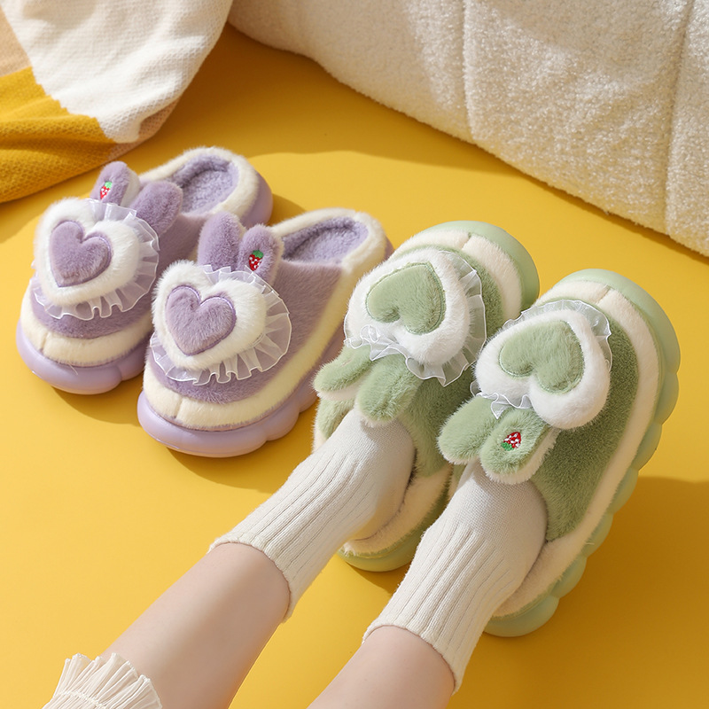 new fluffy slippers autumn and winter platform cotton shoes peach heart confinement shoes warm indoor and outdoor cotton slippers women wholesale