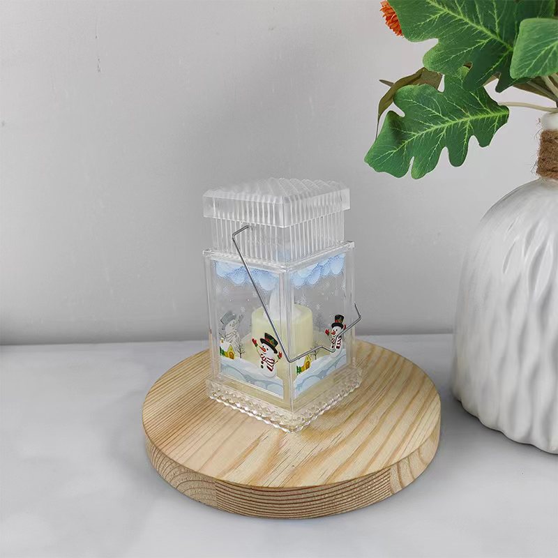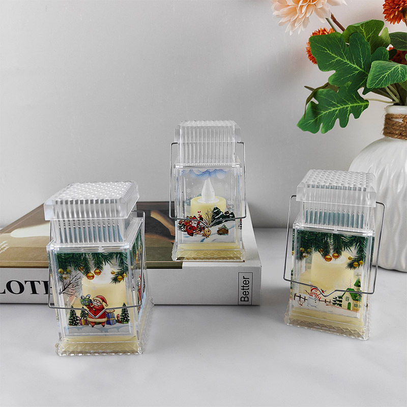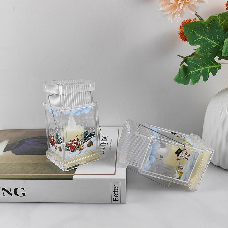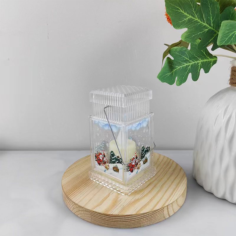 christmas decoration gift plastic flat top storm lantern creative portable luminous small night lamp holiday scene decoration props