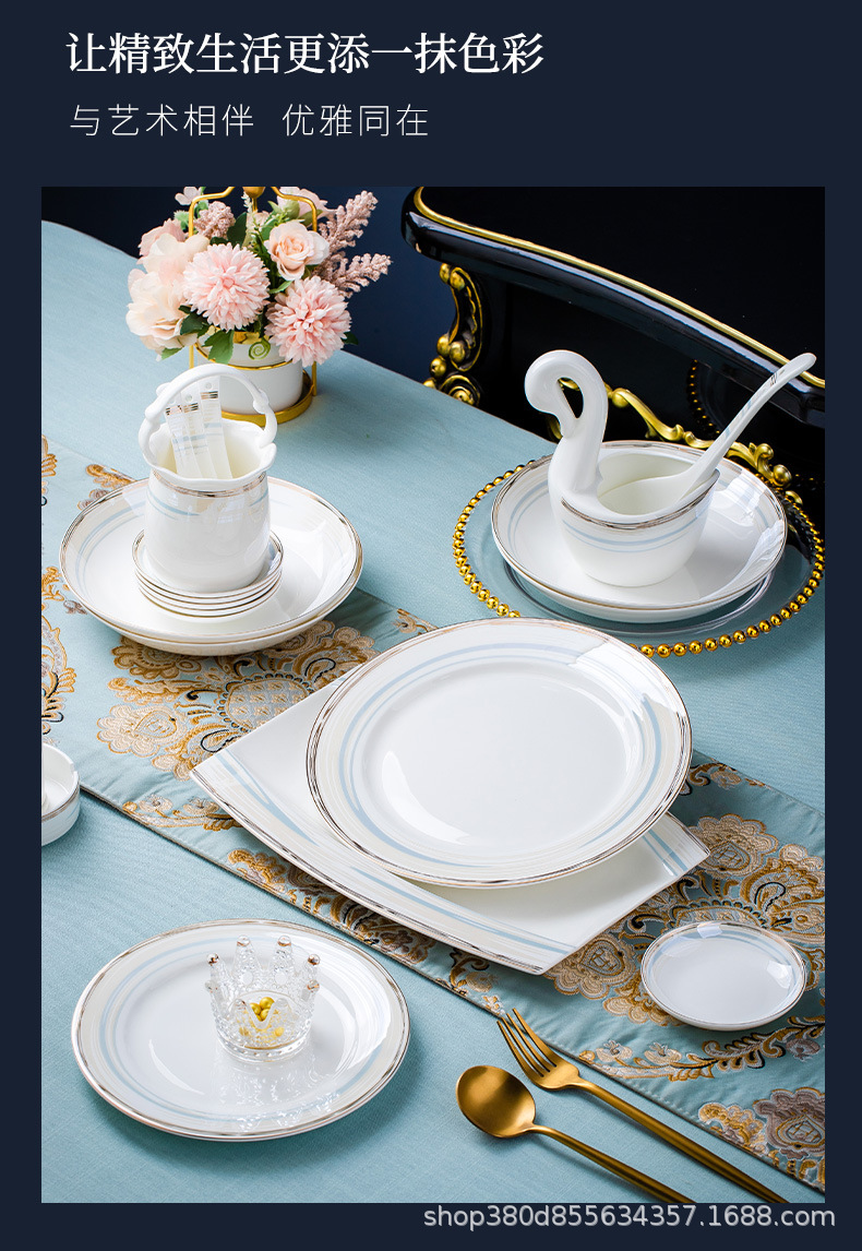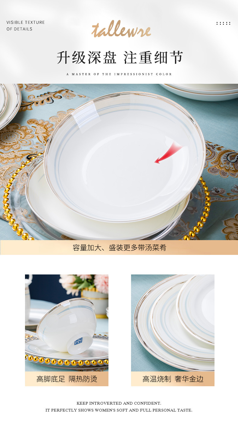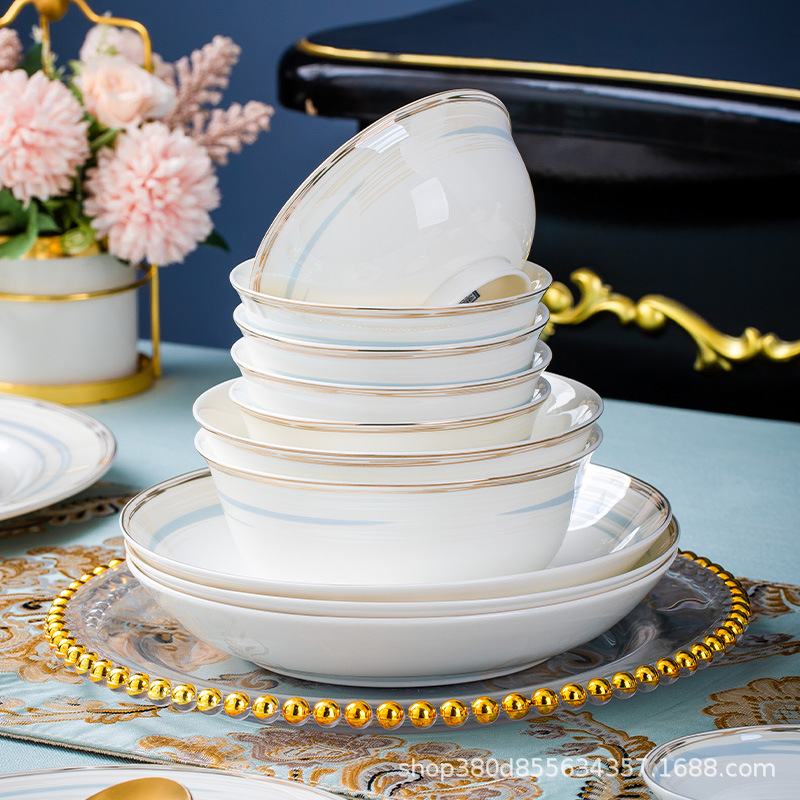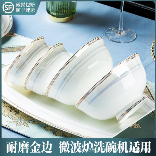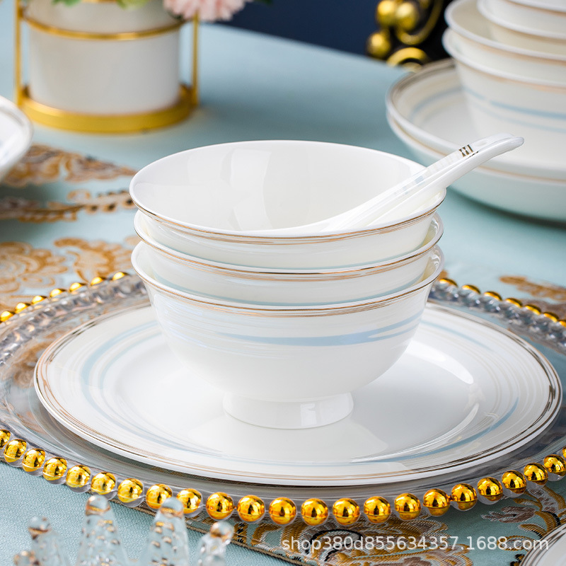 high-grade bone china bowl dish tableware suit phnom penh household entry lux elegant bowl plate bowl chopsticks gift wholesale