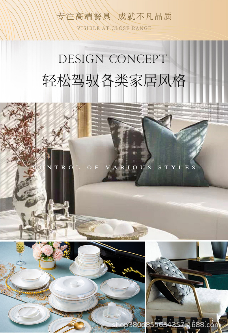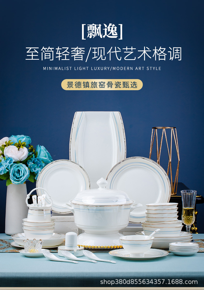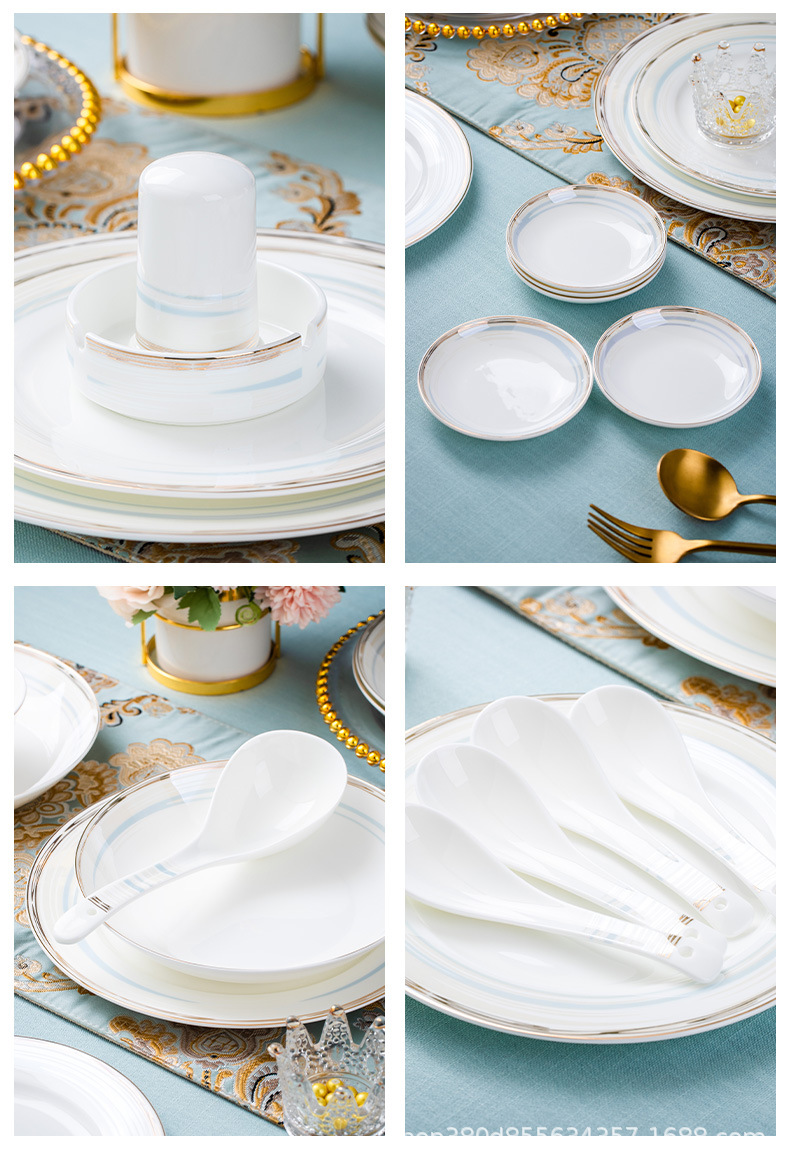 high-grade bone china bowl dish tableware suit phnom penh household entry lux elegant bowl plate bowl chopsticks gift wholesale