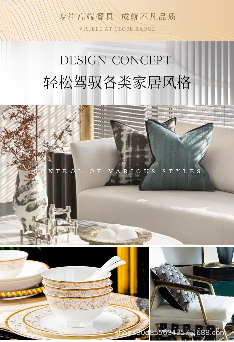 jingdezhen bone china tableware bowl dish & plate combination company gift factory bowl plate chopsticks suit practical gift wholesale
