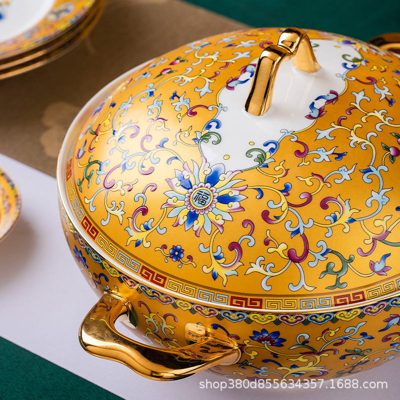 dishes suit chinese style classical style jingdezhen ceramic tableware suit gold super high-end tableware gift porcelain