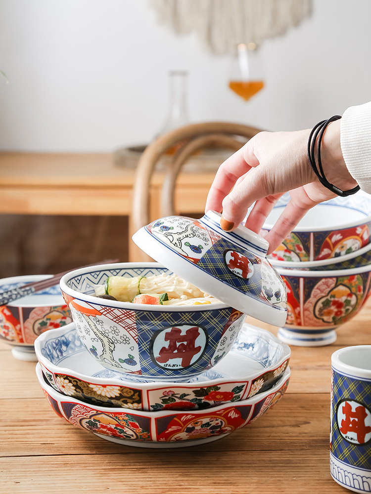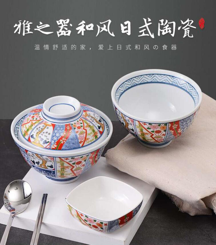 japanese restaurant ceramic beef rice bowl beef bowl bucket-type goblet painted tureen covered ramen bowl