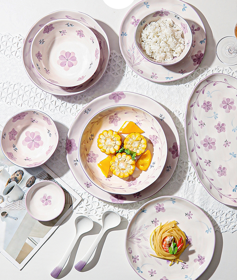 purple orchid bowl dish ceramic tableware household moving into the new house plate tableware suit gift new 2023