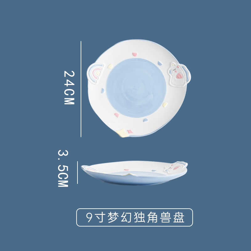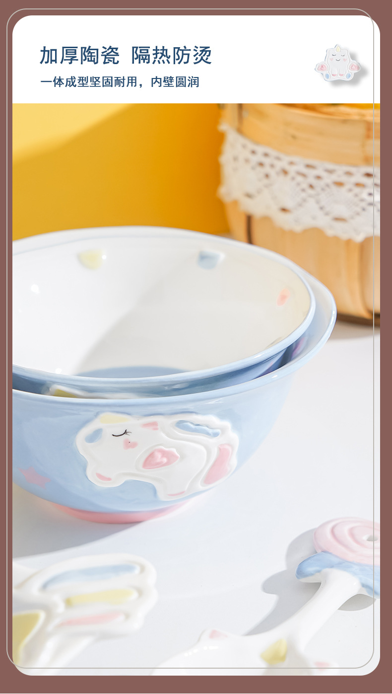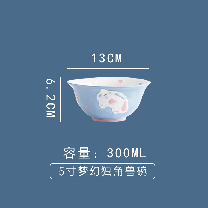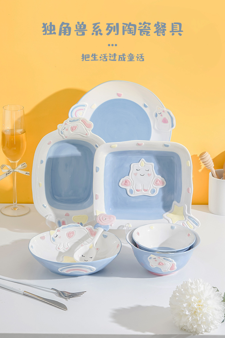 cute unicorn ceramic bowl and dish underglaze home cartoon tableware rice bowl soup bowl baking bowl dish bowl and dish combination