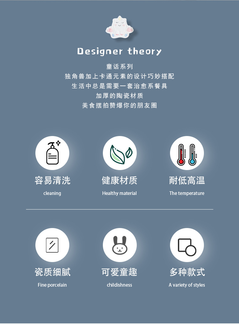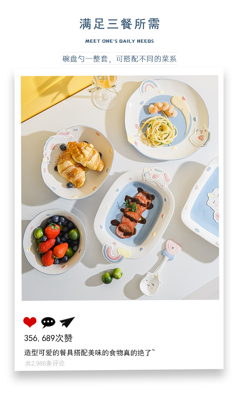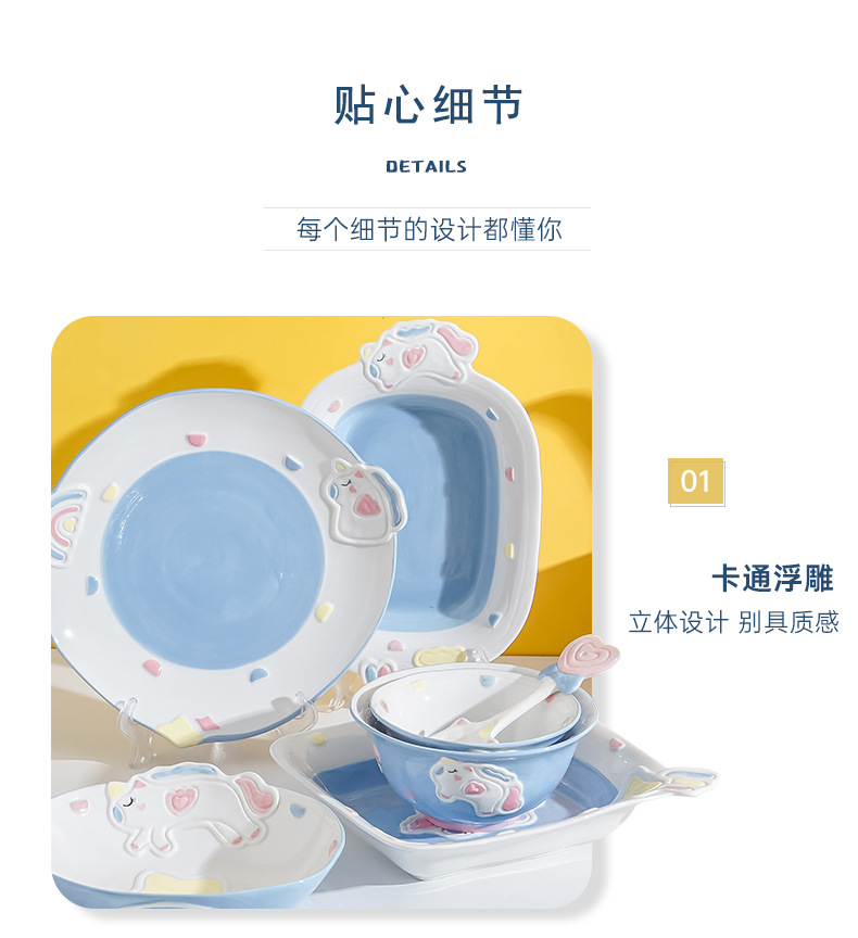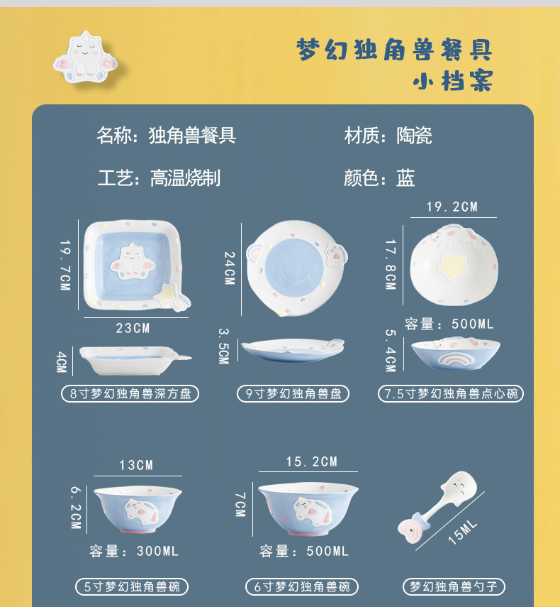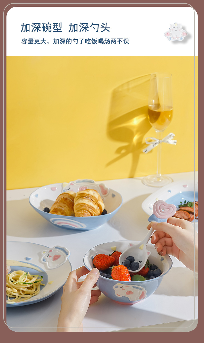 cute unicorn ceramic bowl and dish underglaze home cartoon tableware rice bowl soup bowl baking bowl dish bowl and dish combination
