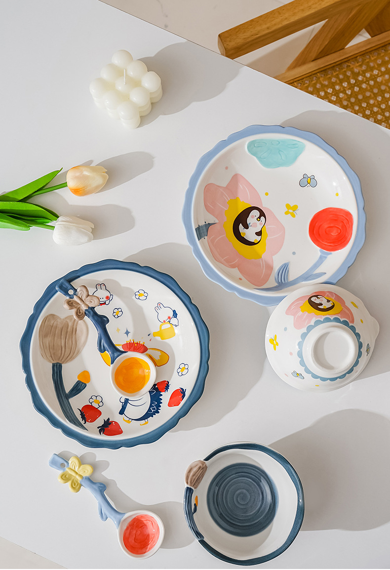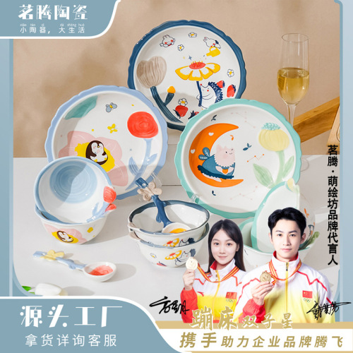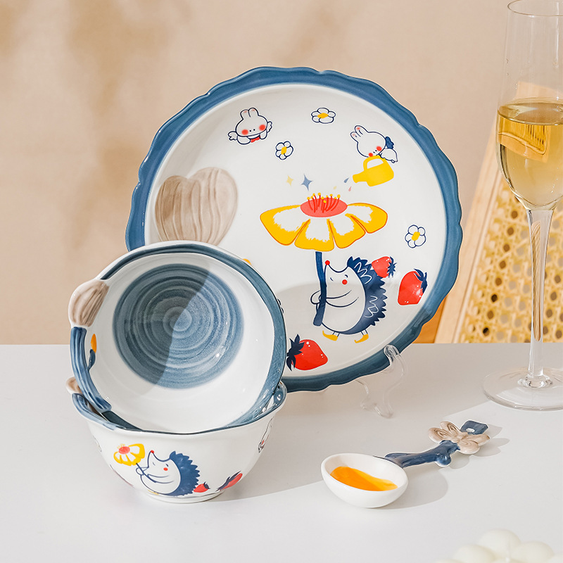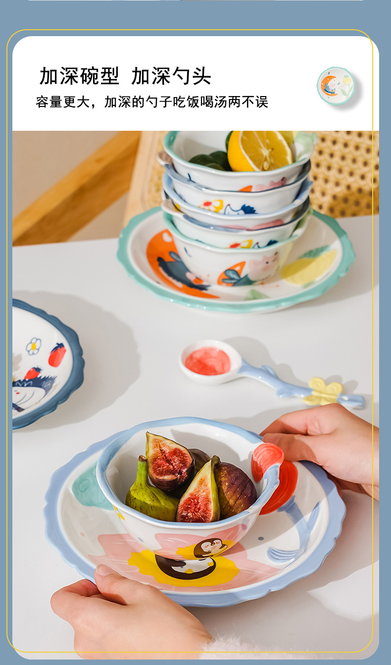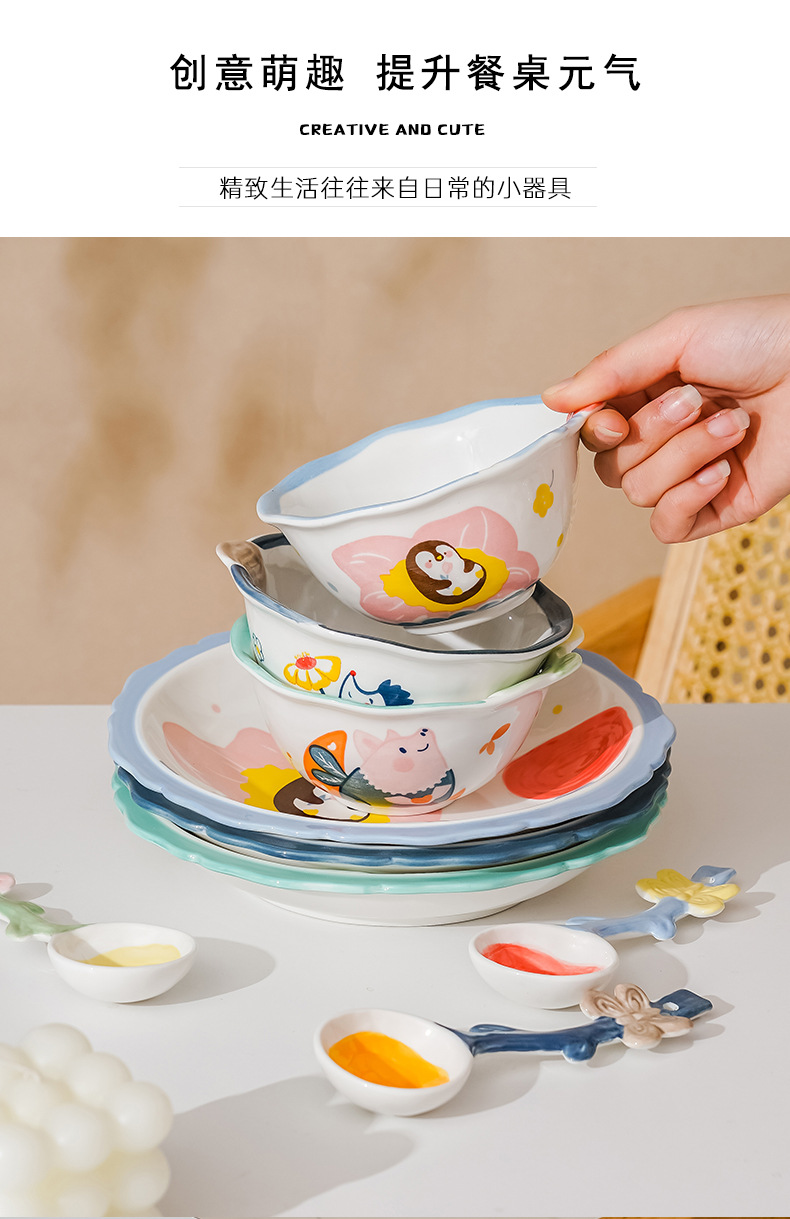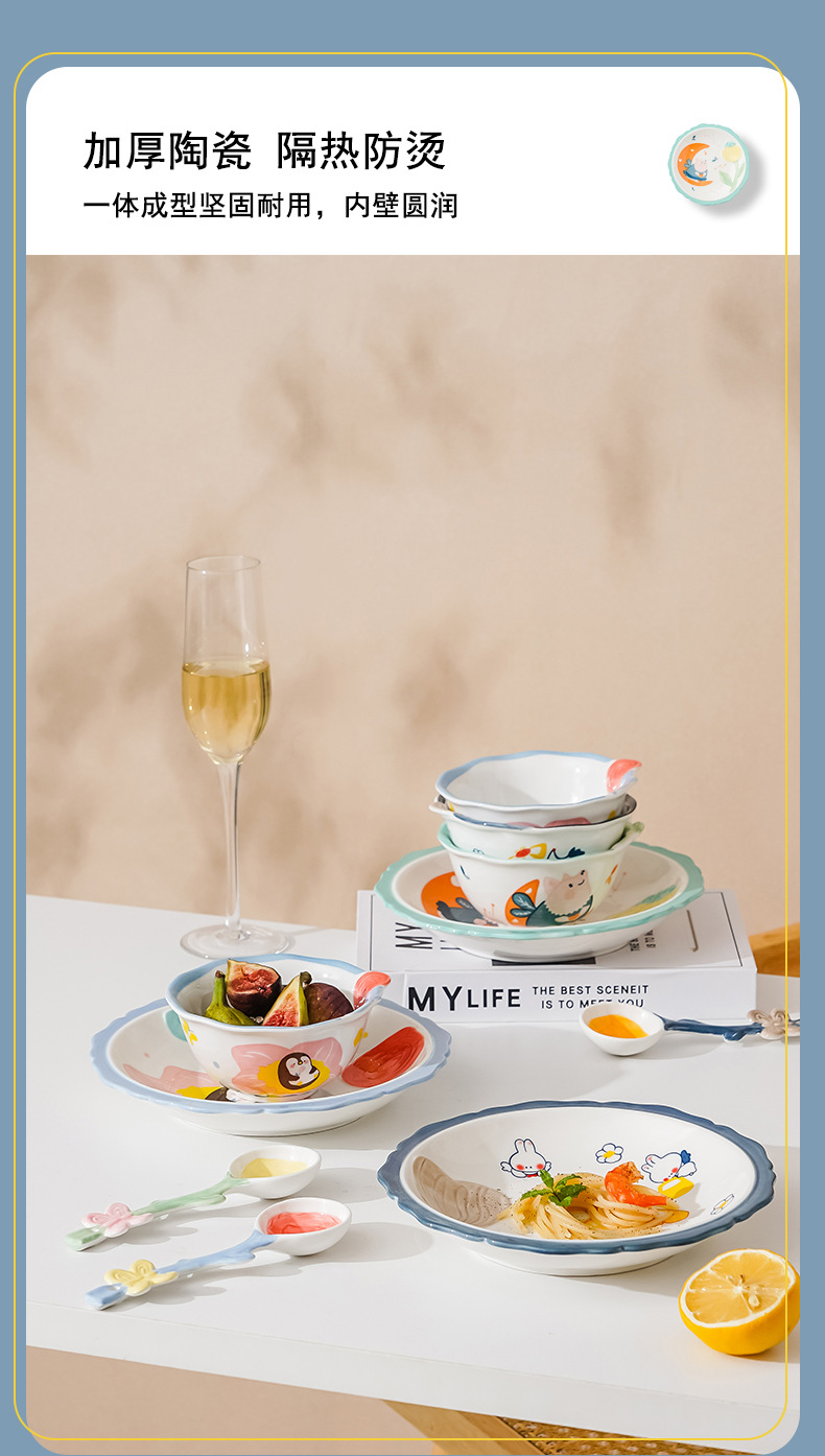 cute new home cartoon animal ceramic tableware children's bowl rice bowl cute fresh plate full set