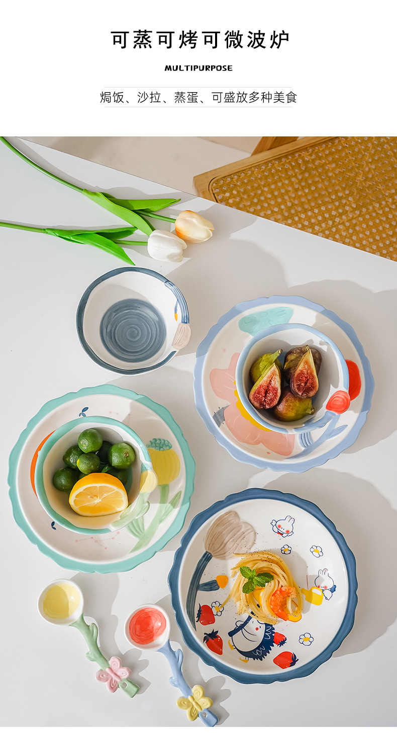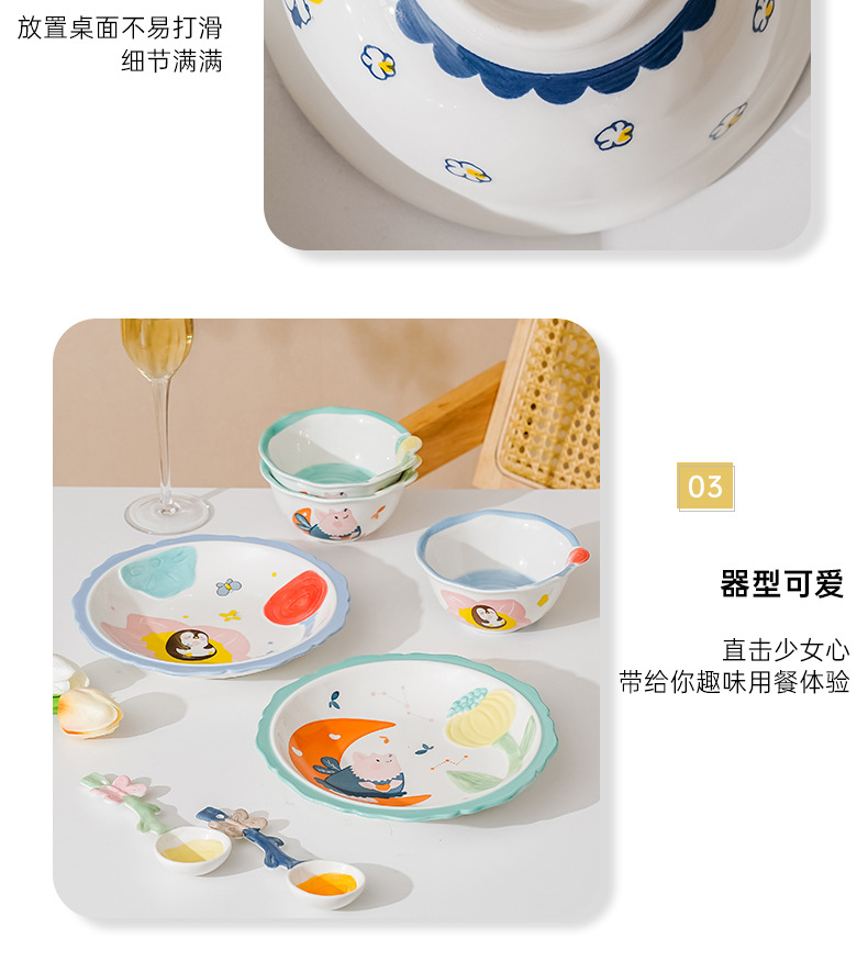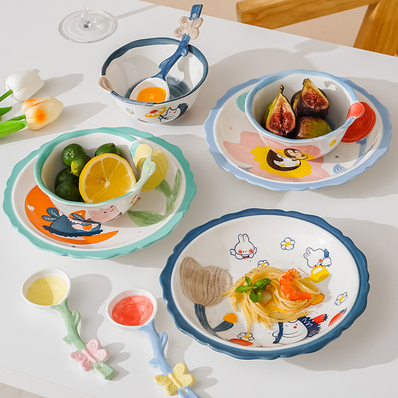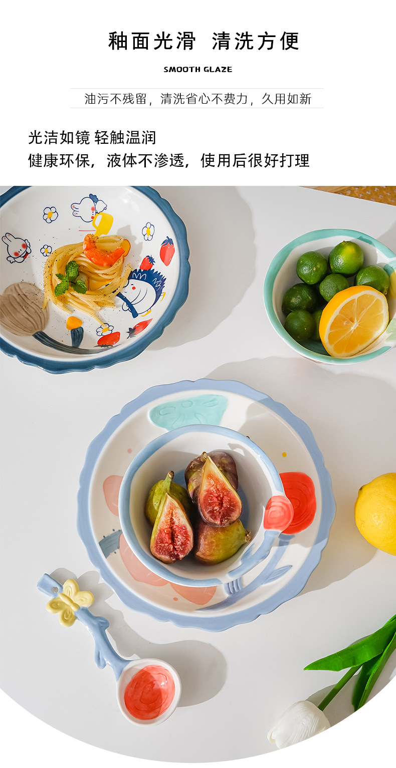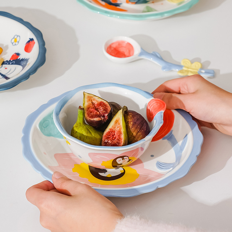 cute new home cartoon animal ceramic tableware children's bowl rice bowl cute fresh plate full set