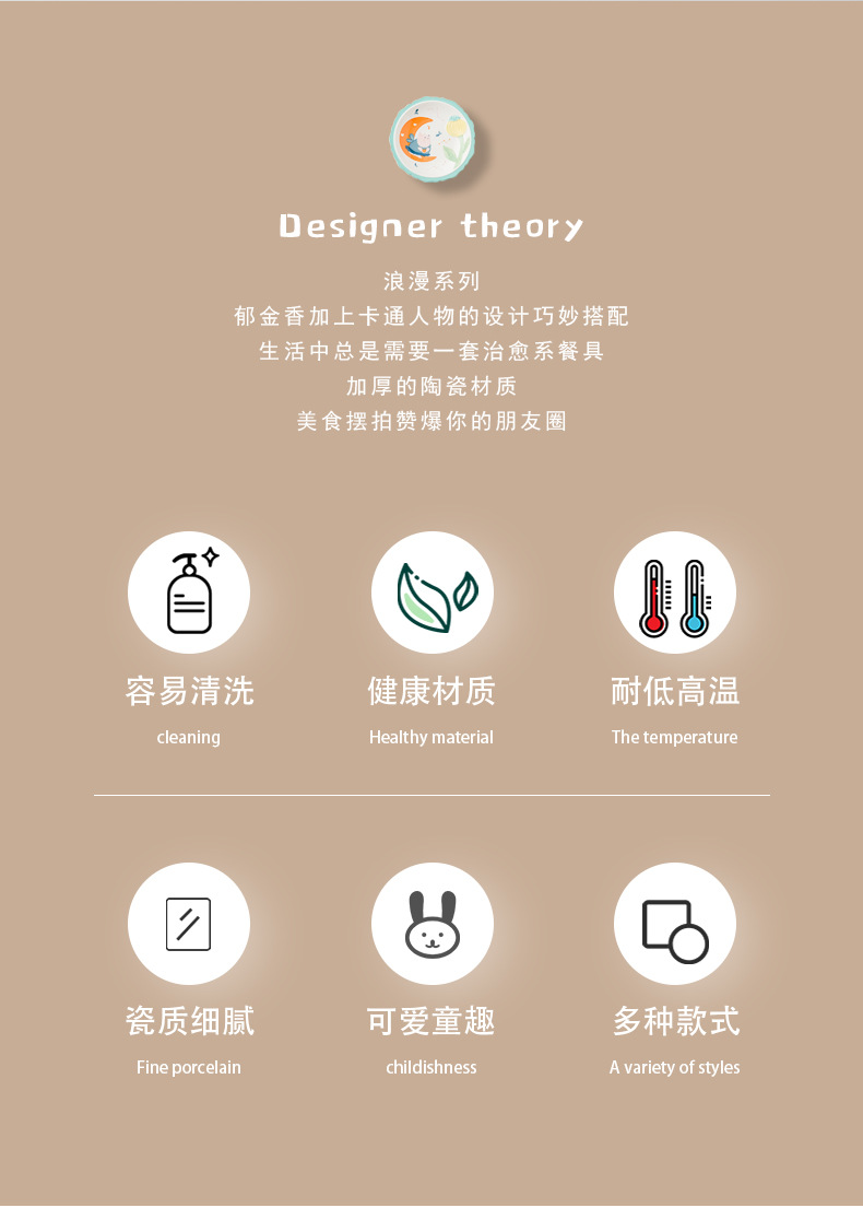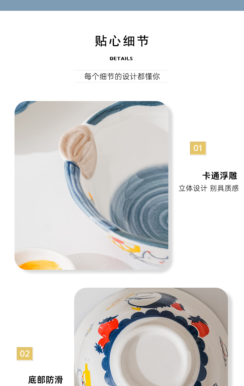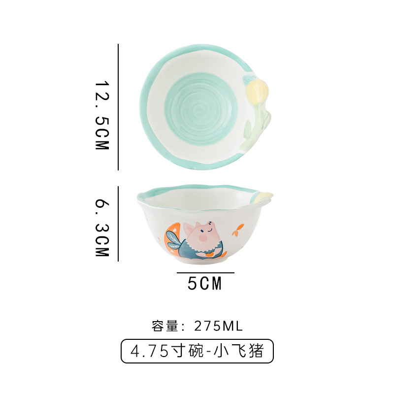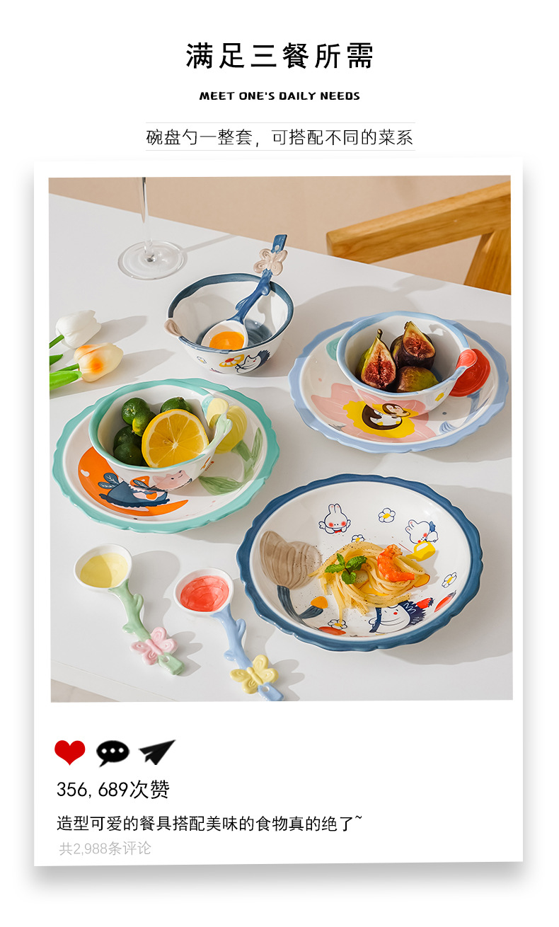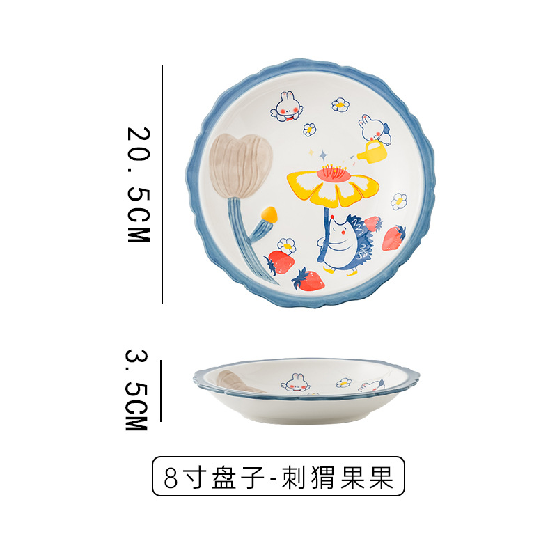 cute new home cartoon animal ceramic tableware children's bowl rice bowl cute fresh plate full set