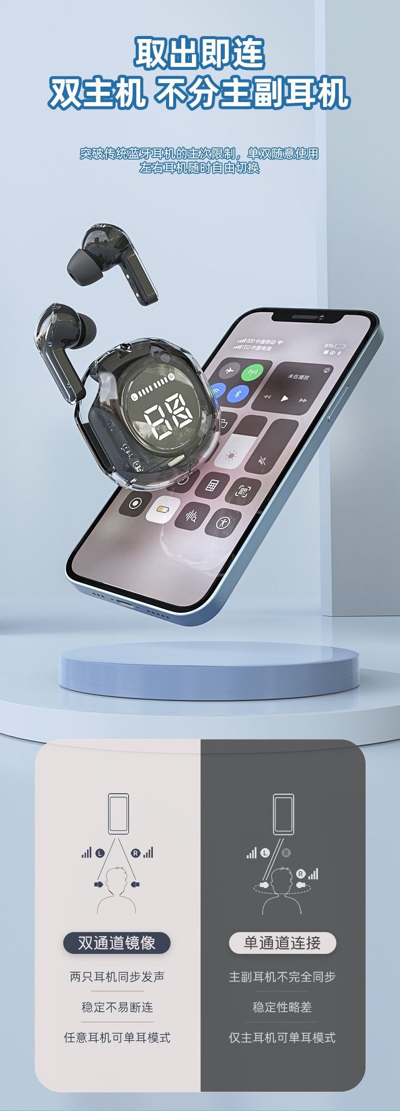 Cross-Border Transparent Game Bluetooth Headset for Apple Huawei Tws Long Endurance Wireless Bluetooth Headset Air39.