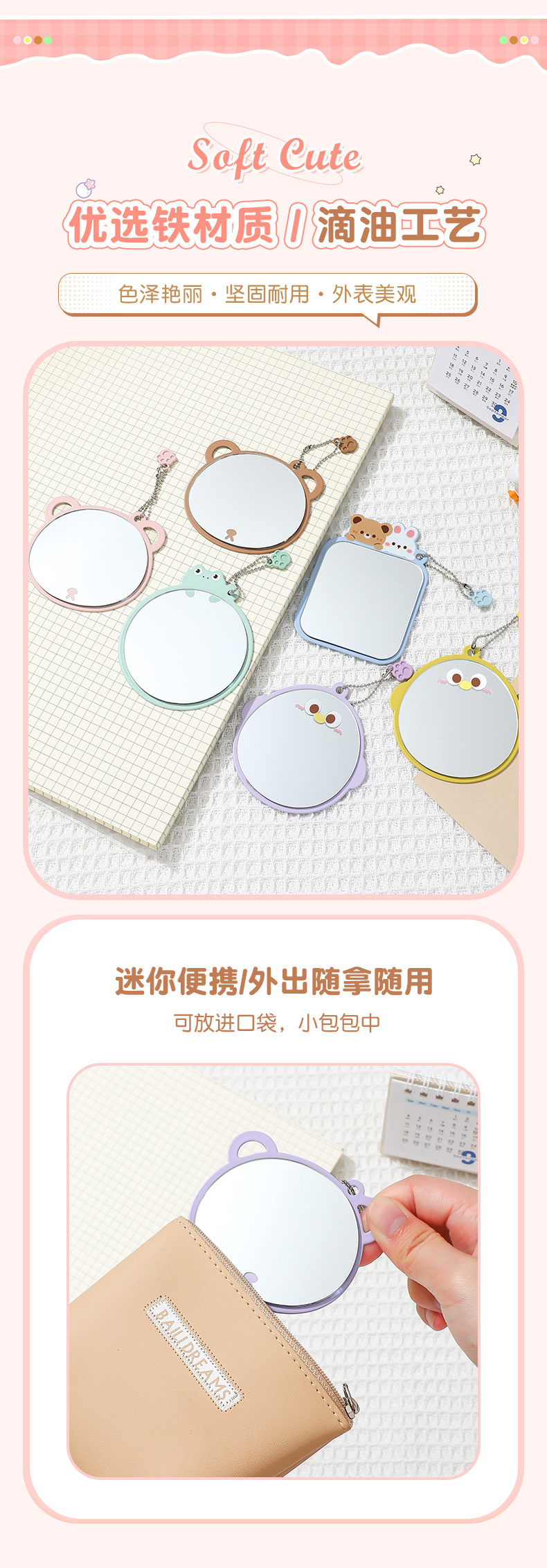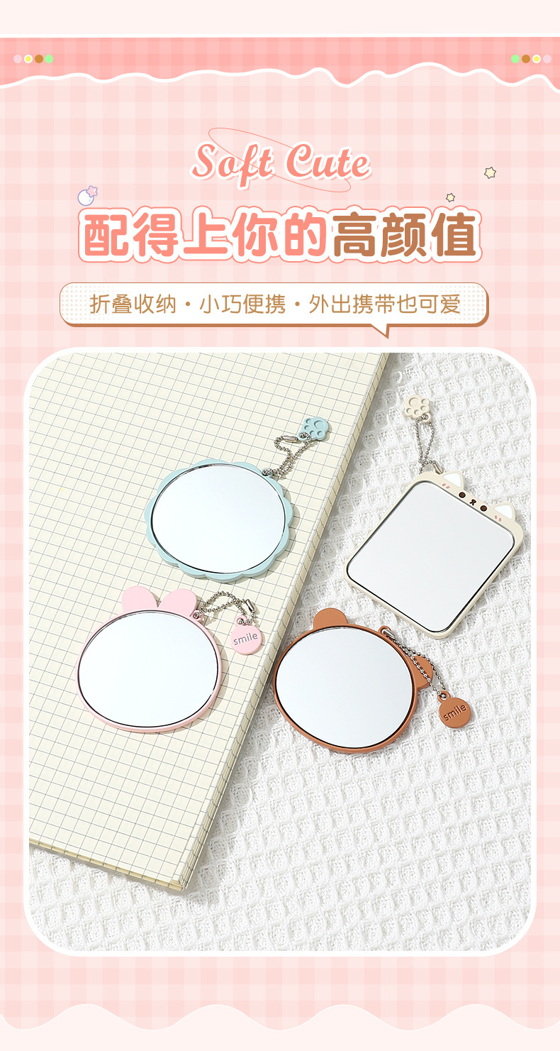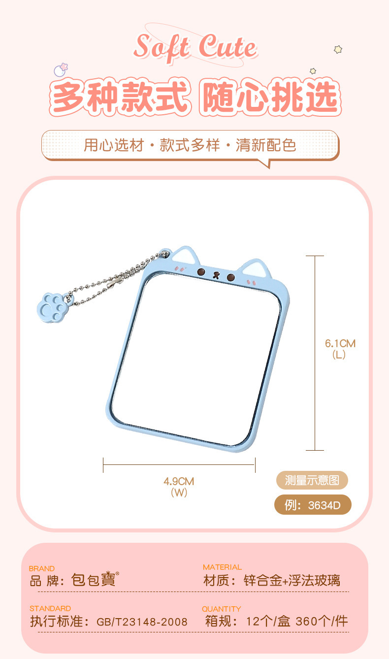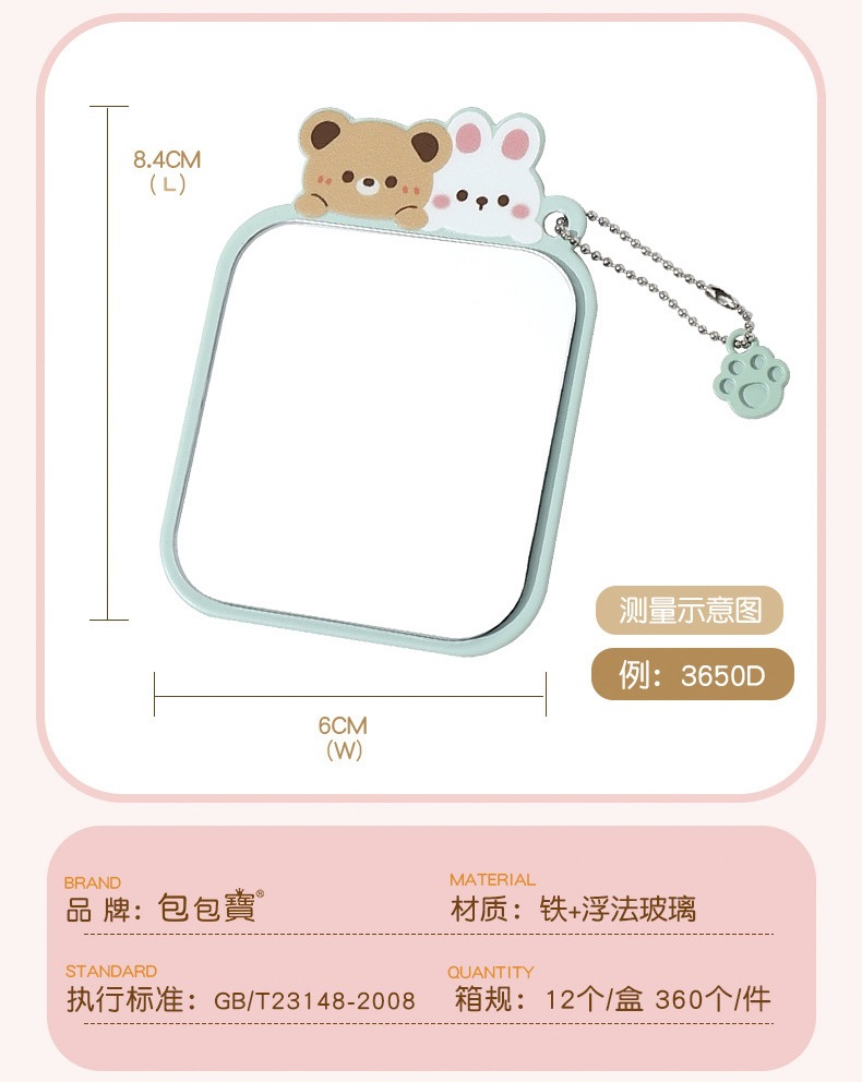 bao bao bao alloy small mirror cartoon style cute makeup mirror women's student portable small portable iron mirror 中文版